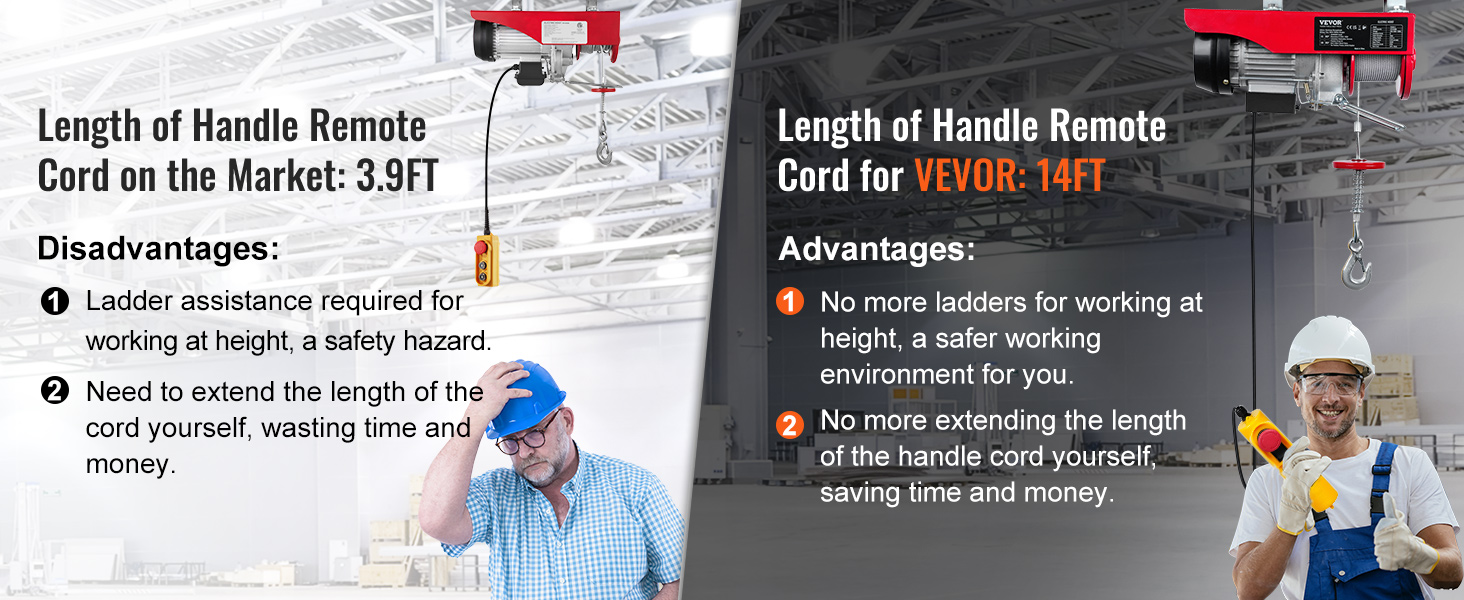 Електрична Лебідка VEVOR 598.7кг, 1150Вт 220В, з 4.27м Пультом, 12.19м Висота Підйому, Мідний Двигун для Гаража/Фабрики