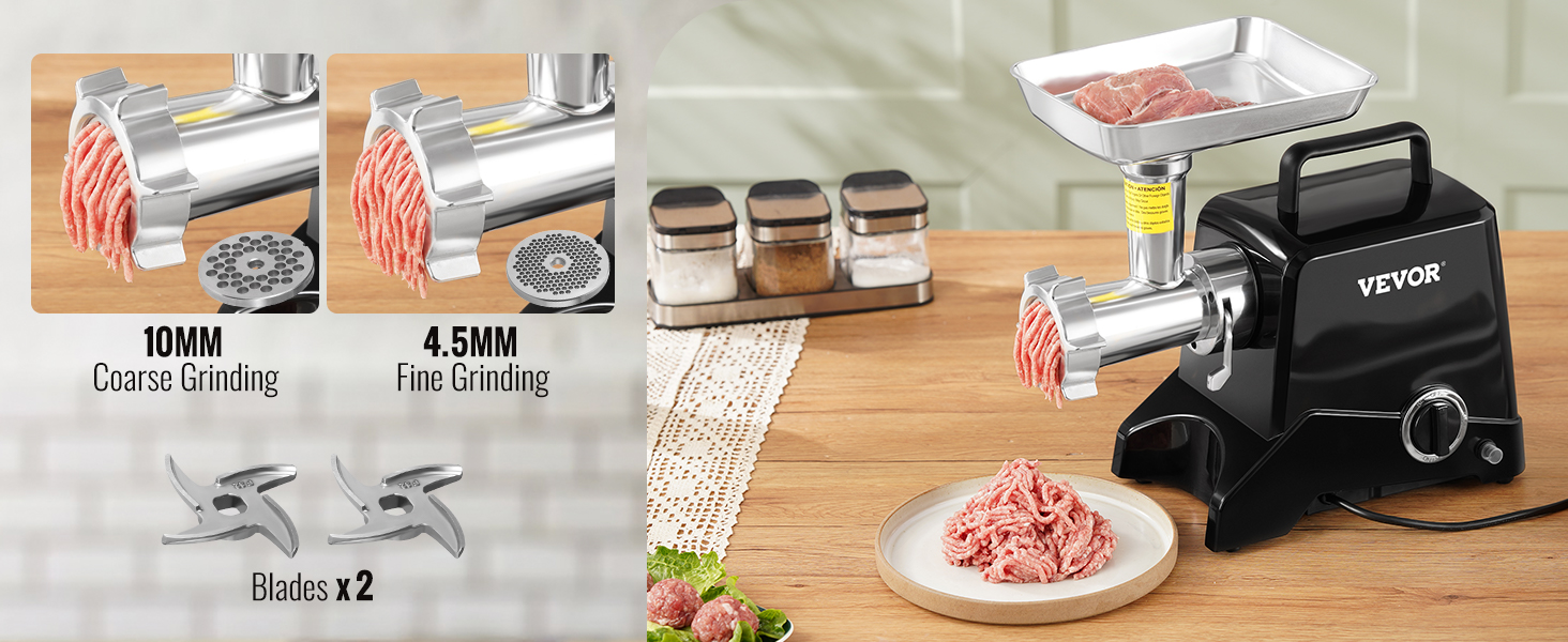 Our meat grinder features a premium die-cast aluminum body and a larger food tray with attachments made of food-grade materials for healthier food processing. In addition, high hardness, heat resistance, and rust-proof are far superior to other models.