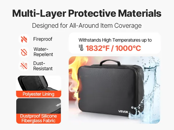 • Fireproof and Waterproof Material: Made from heat-resistant flame-retardant material, this fireproof document box uses dustproof silicone fiberglass and polyester lining, withstanding up to 1832℉/1000℃, protecting your documents, cash, and valuables