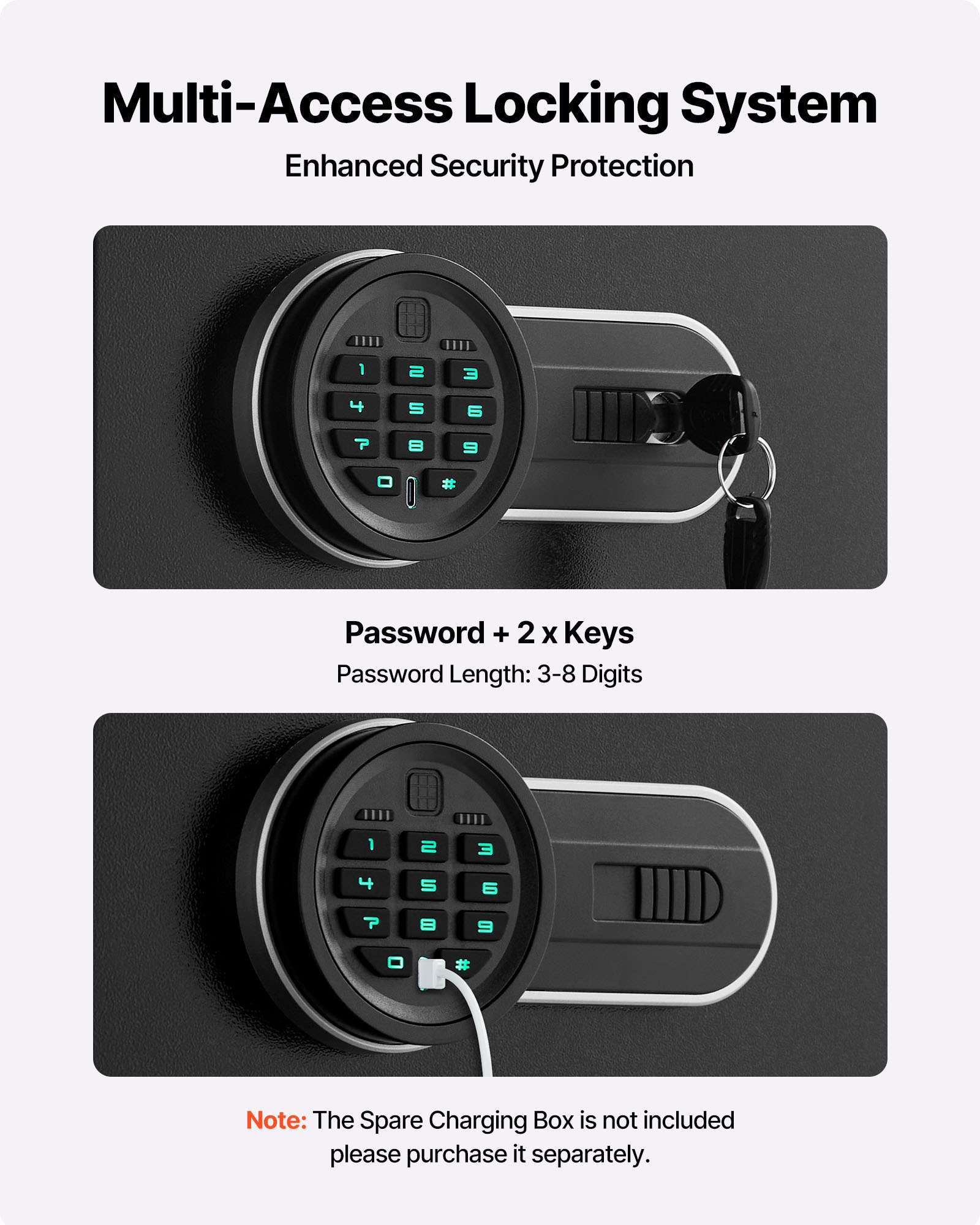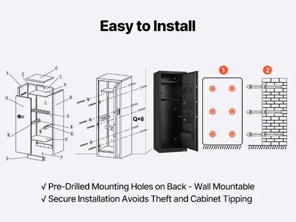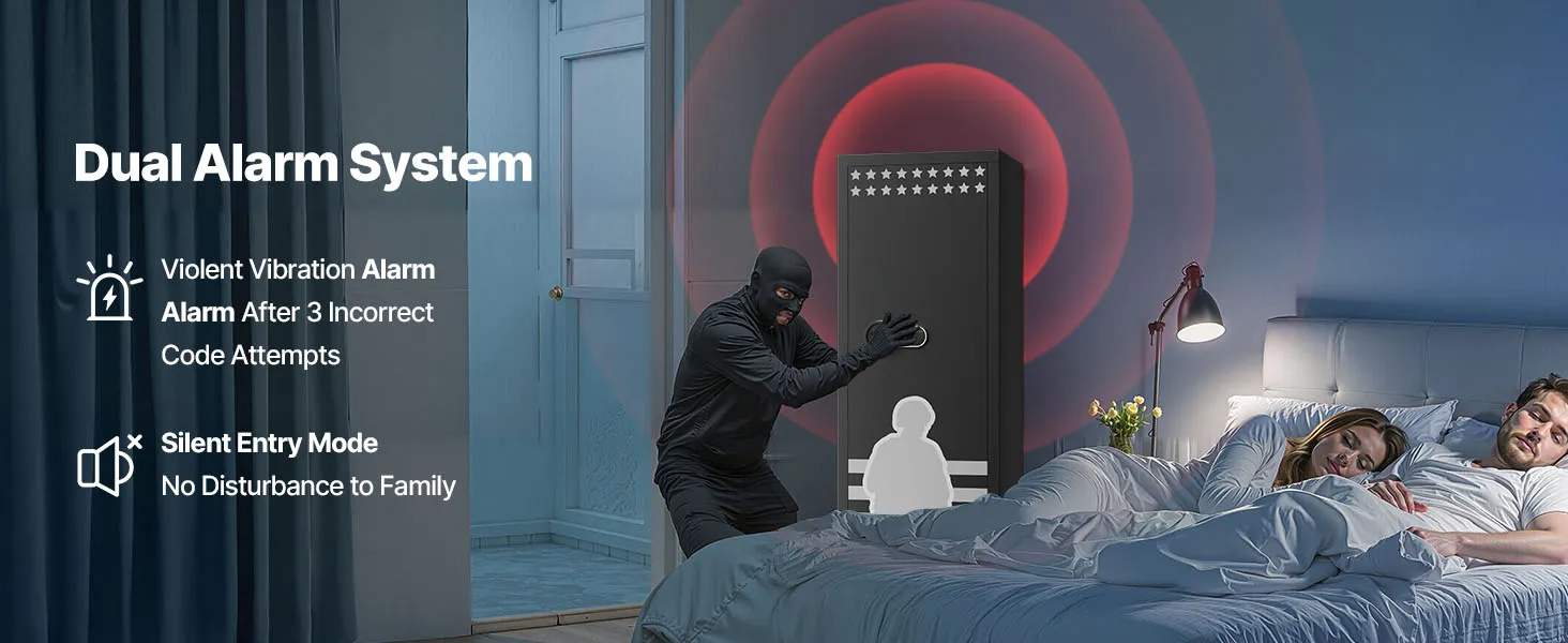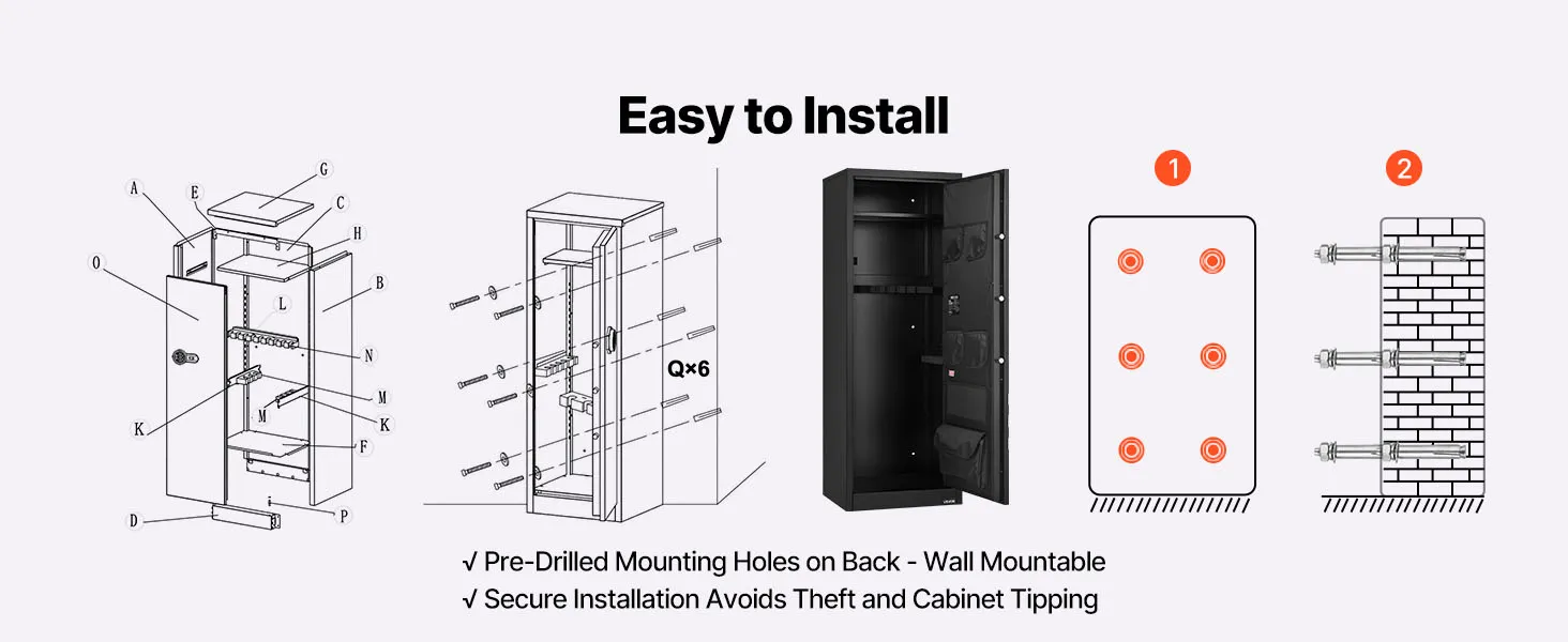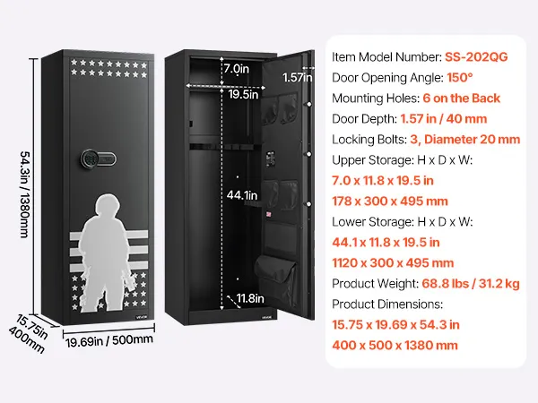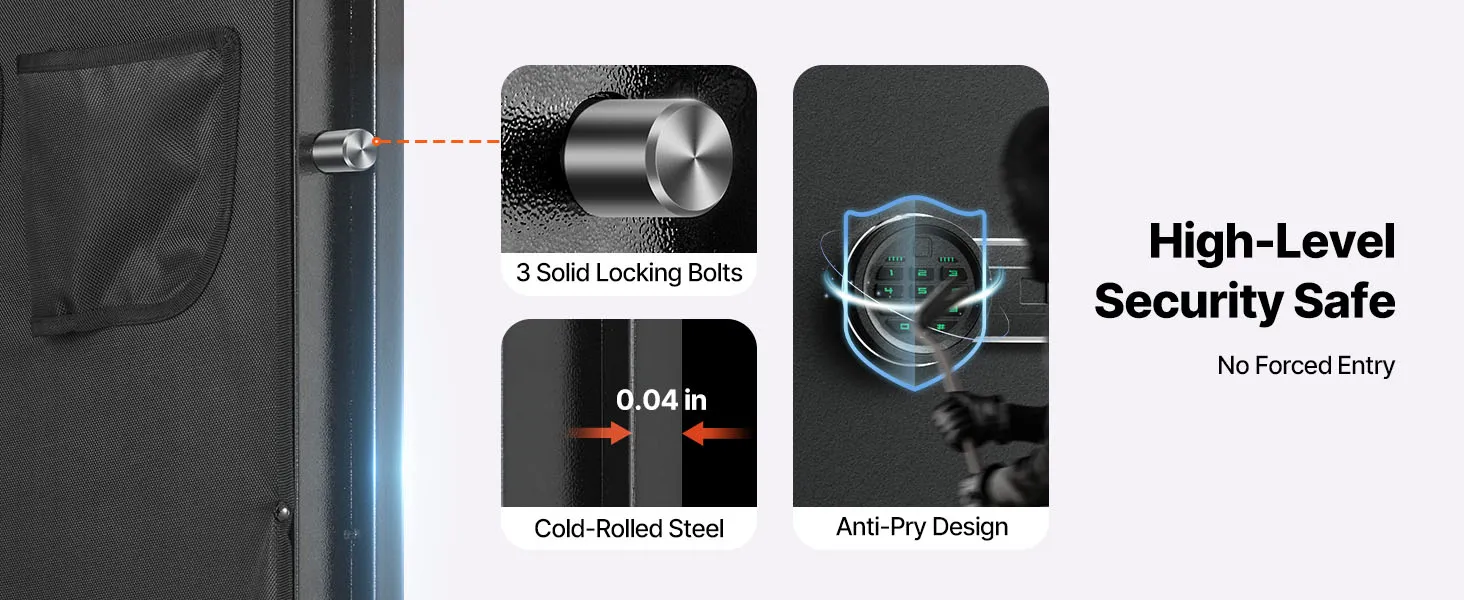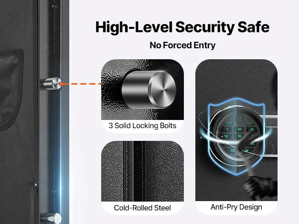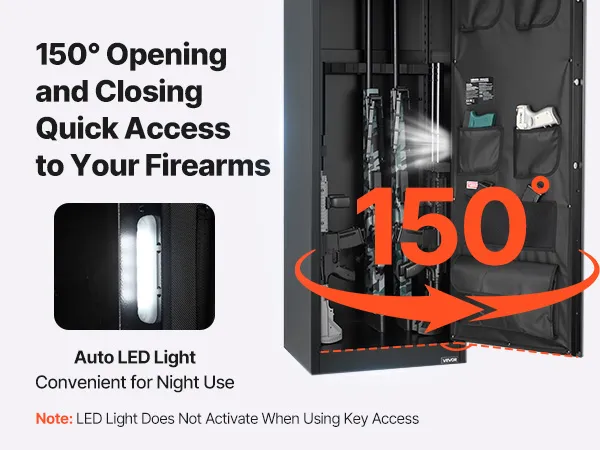 The gun safe can hold up to 10-12 rifles and 4 handguns, meeting the storage needs of heavy collectors and multi-gun users. It is equipped with adjustable racks to accommodate firearms of various lengths.