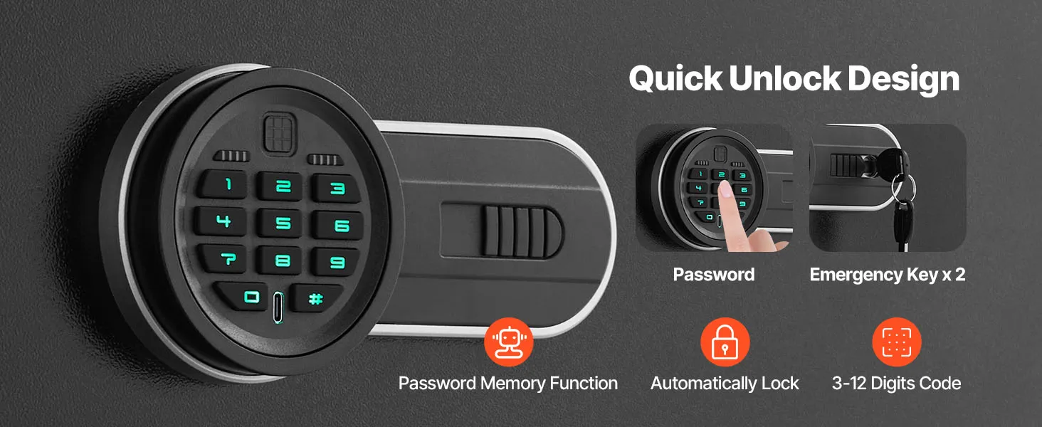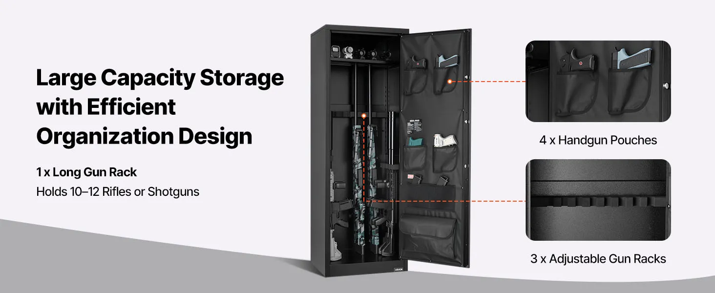 VEVOR 10-12 Gun Safe, Long Gun Cabinet for Rifles and Pistols, Quick Access Rifle Safe with 4 Pistol Pockets and 3 Adjustable Racks, Large Digital Cabinet with Key and Password Lock