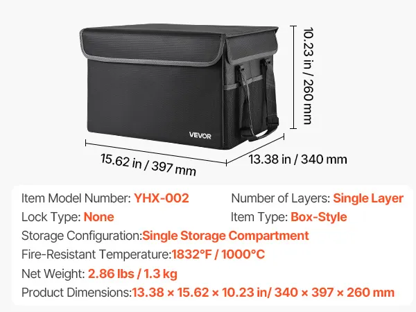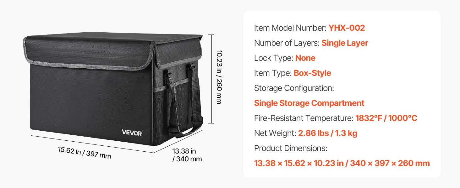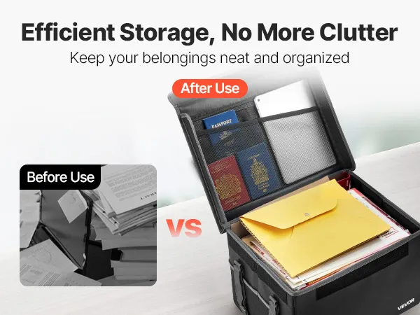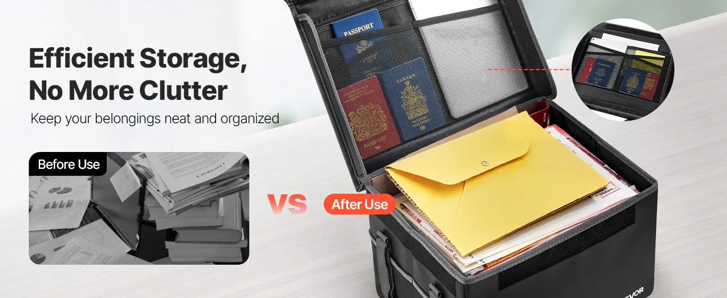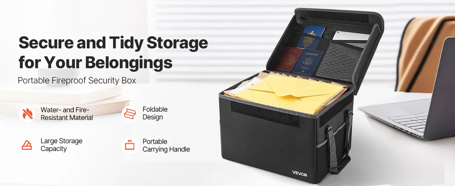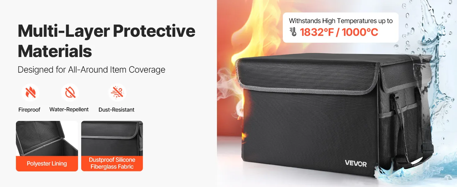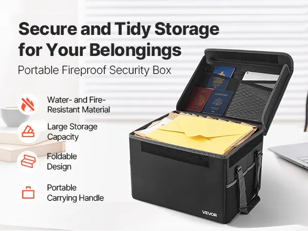 Crafted from fire-resistant material, this box withstands 1832℉/1000℃ and blocks water and dust. The 2.86 lbs/1.3 kg foldable design saves space while organizing files and devices with layered storage. Ideal for home, office, or travel.