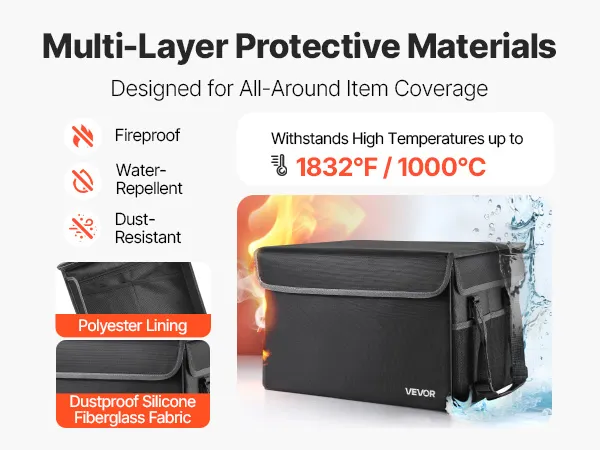 Our fireproof box is built from dustproof silicone fiberglass cloth, withstanding up to 1832℉/1000℃. From sudden fire to rainstorms or daily dust, it keeps your important files and electronics secure, offering dependable care for valuables in all conditions.