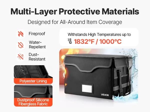 This fireproof box uses dustproof silicone fiberglass cloth with polyester lining, enduring up to 1832℉/1000℃. No matter fire, rain, or daily dust, it ensures files and electronics stay secure, giving valuables consistent care and reliable performance.