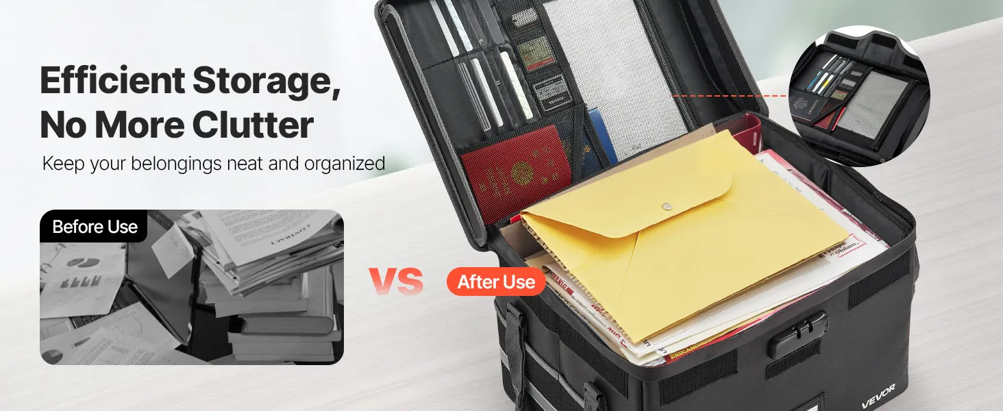 Whether storing documents at home, keeping files in the office, taking valuables on trips, or using them in your car, it adapts with ease and offers convenient access anytime, anywhere.