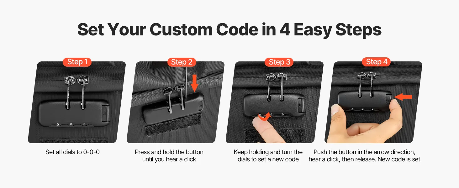 Set your personal code in 4 simple steps to build a solid barrier for valuables. Keep files and electronics secure, enjoying peace of mind at home, in the office, or while traveling.