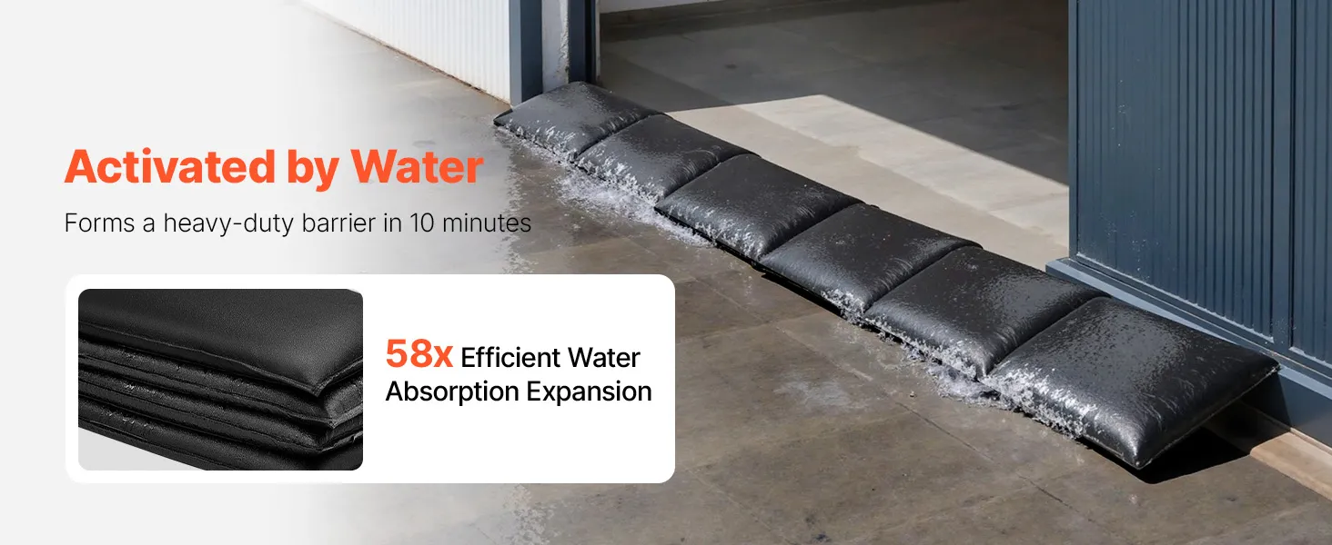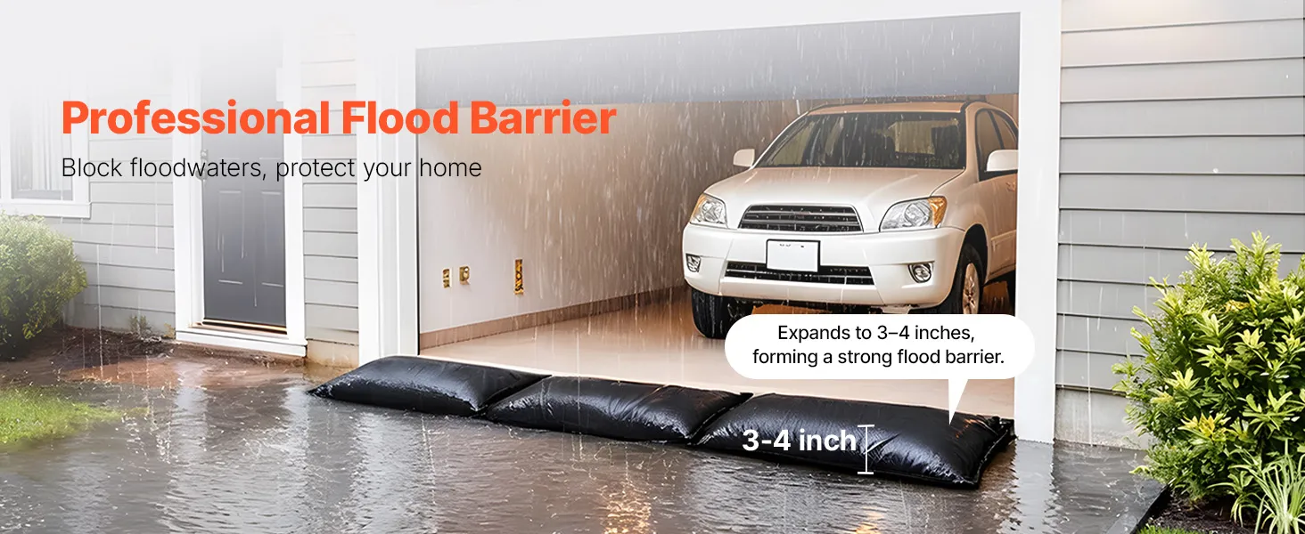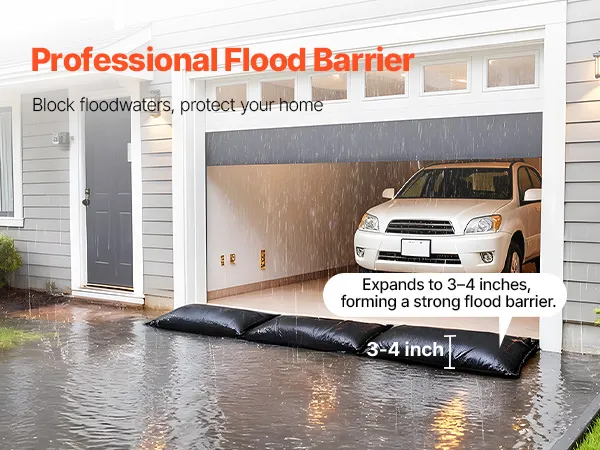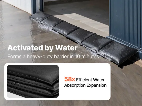 A: 1. Place the dry barrier on the inner side (dry side) of the door/garage entrance to allow water pressure to create a seal. 2. Lay multiple bars side-by-side to cover the opening width, overlapping edges slightly if needed. 3. Activate with a hose/rainwater – expands to 3–4 inches in 3–5 minutes.