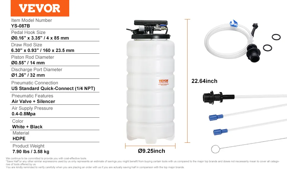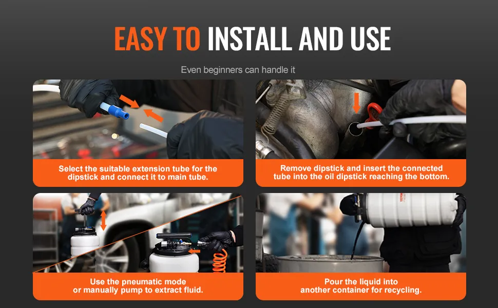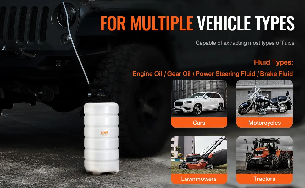 Our oil pump extractor can extract most types of liquids, including engine oil, gear oil, power steering fluid, and brake fluid. It is ideal for cars, motorcycles, lawnmowers, tractors, and more.