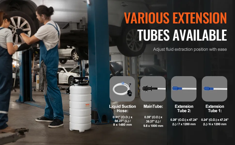 Outfitted with four extension tubes of different specifications, our oil extractor pump can discharge waste directly to designated spots. It adapts flexibly to varying disposal needs.