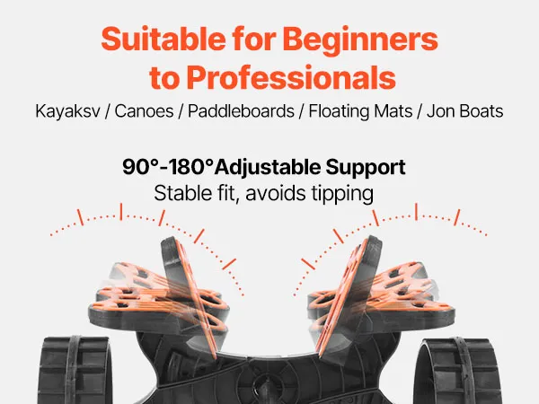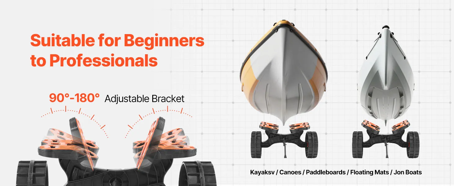 • Universal Compatibility: Adjustable 90°-180° support bracket fits flat, curved, and V-shaped hulls. Our kayak dolly works with paddleboards, canoes, float mats, kayaks, and flat-bottom boats, reducing compatibility issues for users