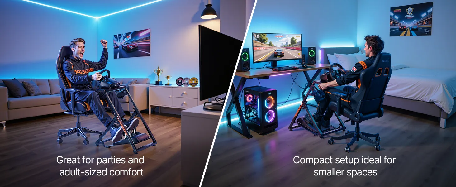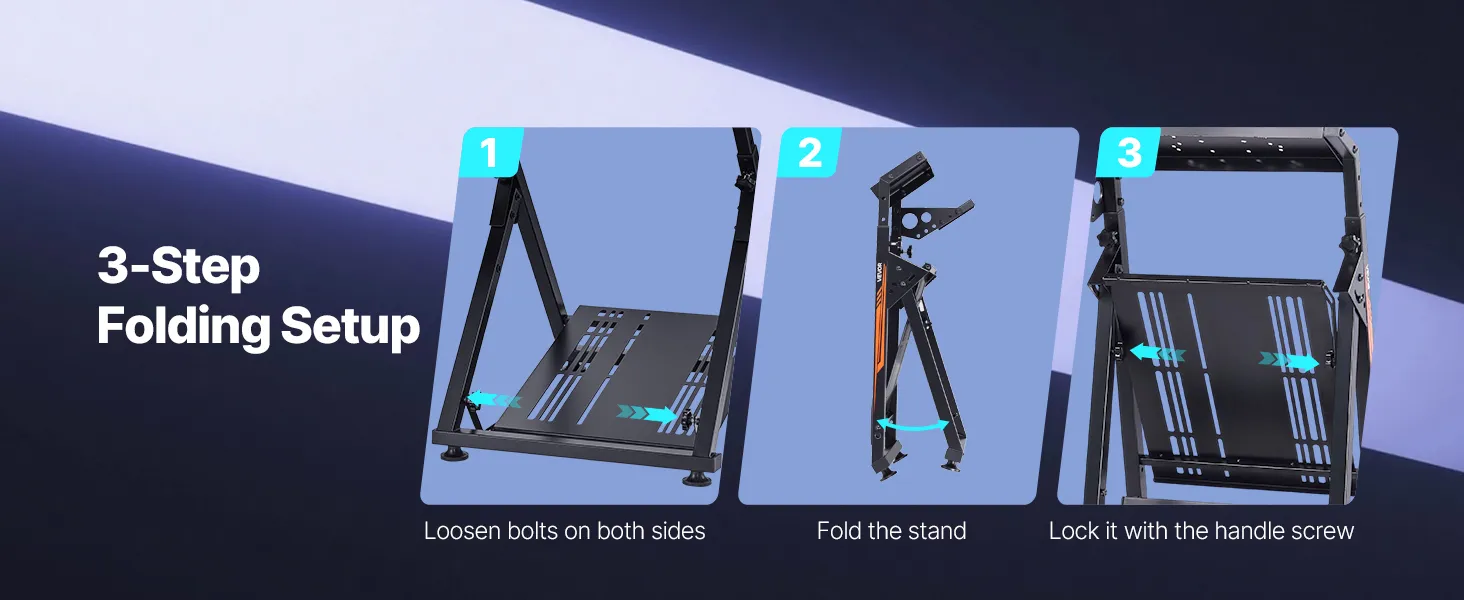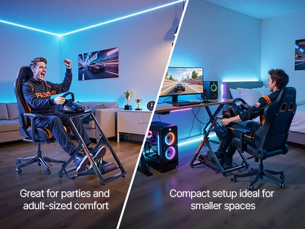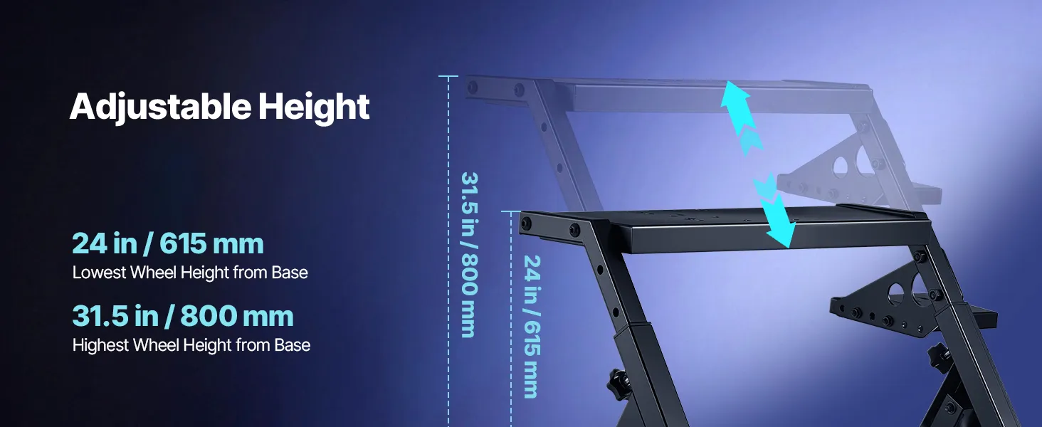 Adjustable racing wheel stand designed for racing game fans. Fully customizable to fit your body for an immersive experience. Made of carbon steel with a smooth, scratch-resistant finish. Easy to clean—just wipe to keep it looking like new.