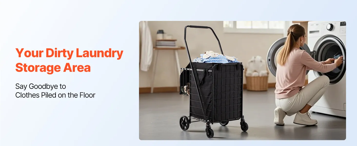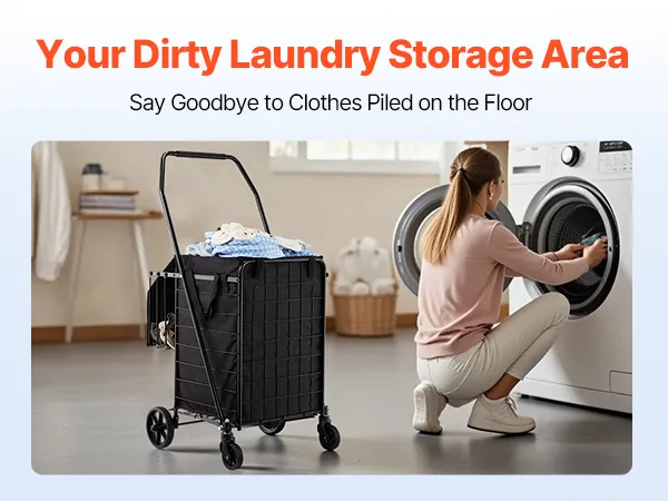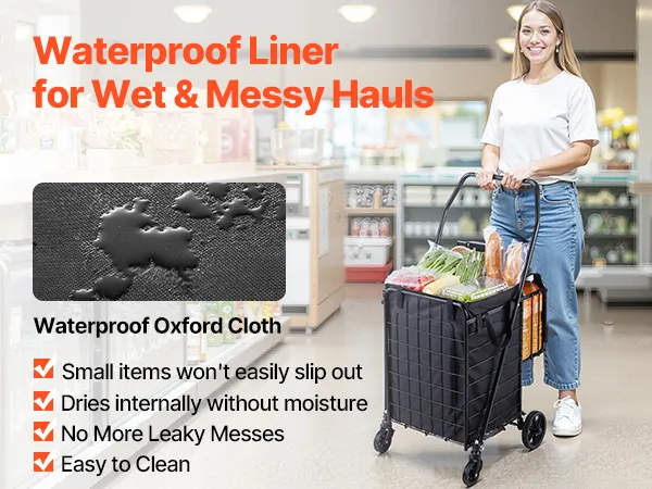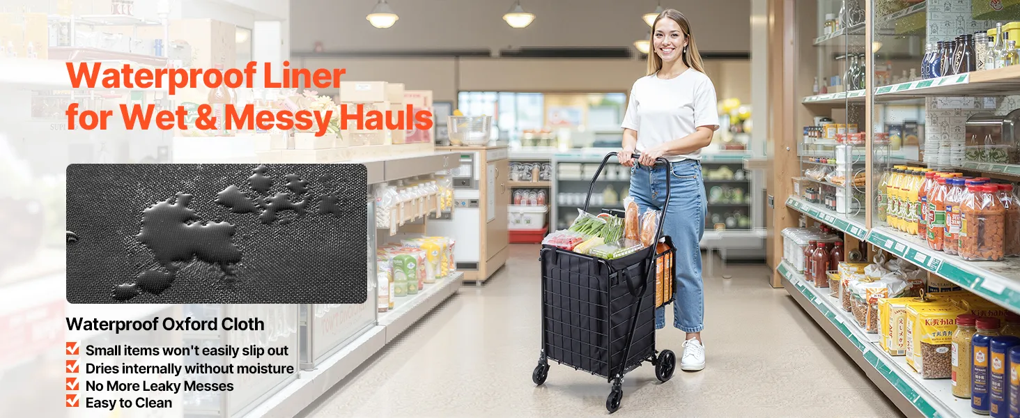 VEVOR Shopping Cart, Folding Grocery Utility Cart with Dual Baskets, Waterproof Liner & Wheels, 45 KG Large Load Capacity, Heavy Duty Laundry Basket for Laundry, Shopping, Camping, Grocery, Luggage