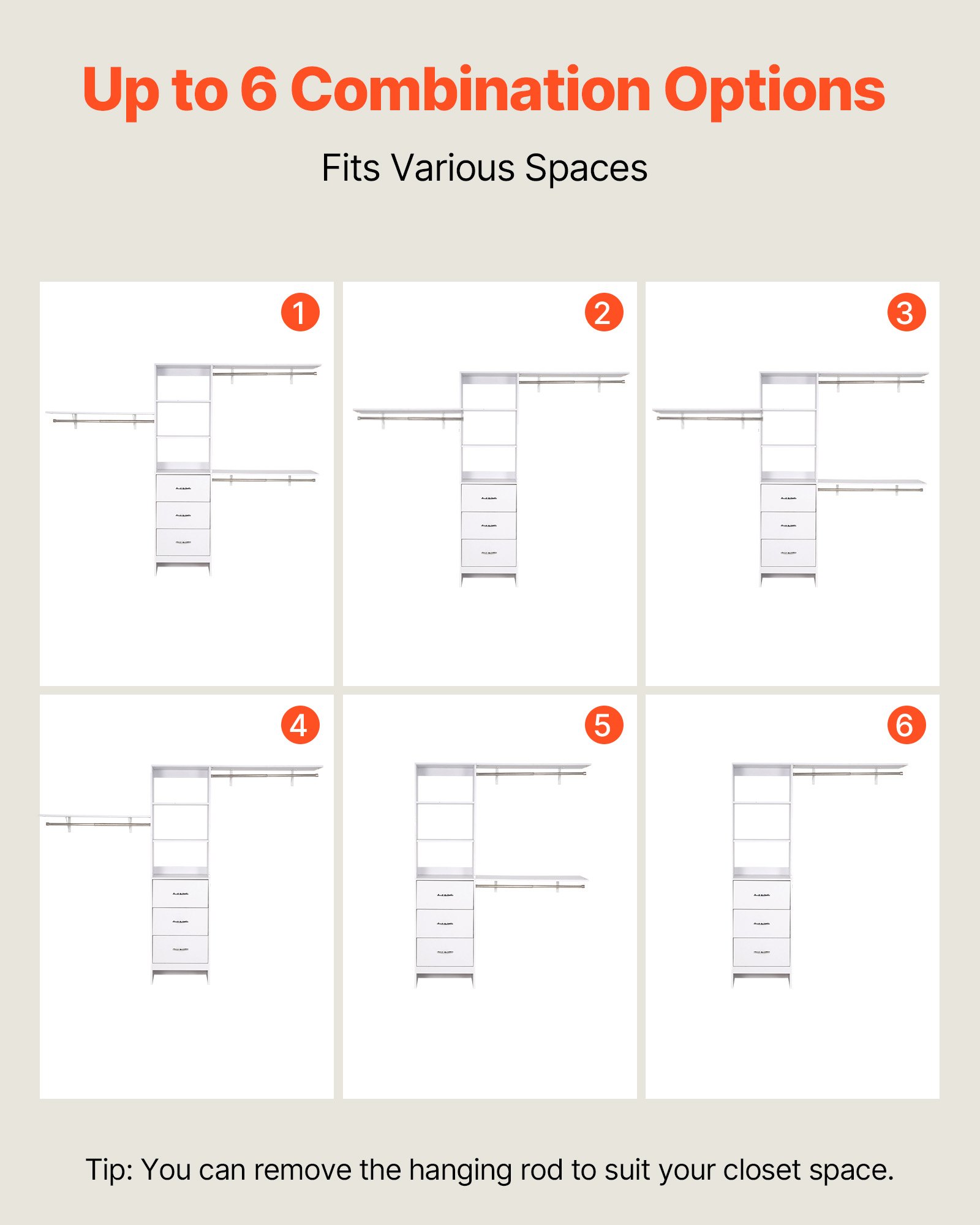 The closet organizer with drawers keeps your wardrobe tidy and clutter-free. Zoned storage makes retrieving and storing clothes simple and efficient.
