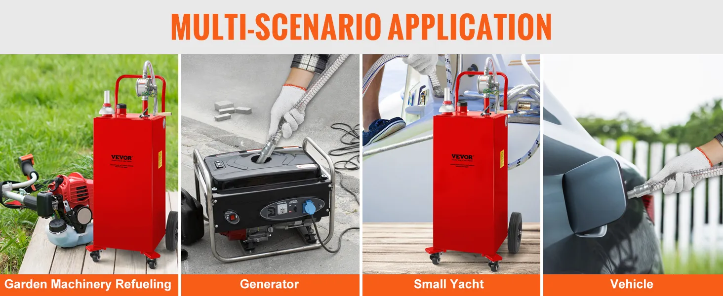 The portable gas tank is designed to transport diesel or gasoline fuel to your job site. It is ideal for tanker trucks, ships, outdoor industries, construction industries, and more.