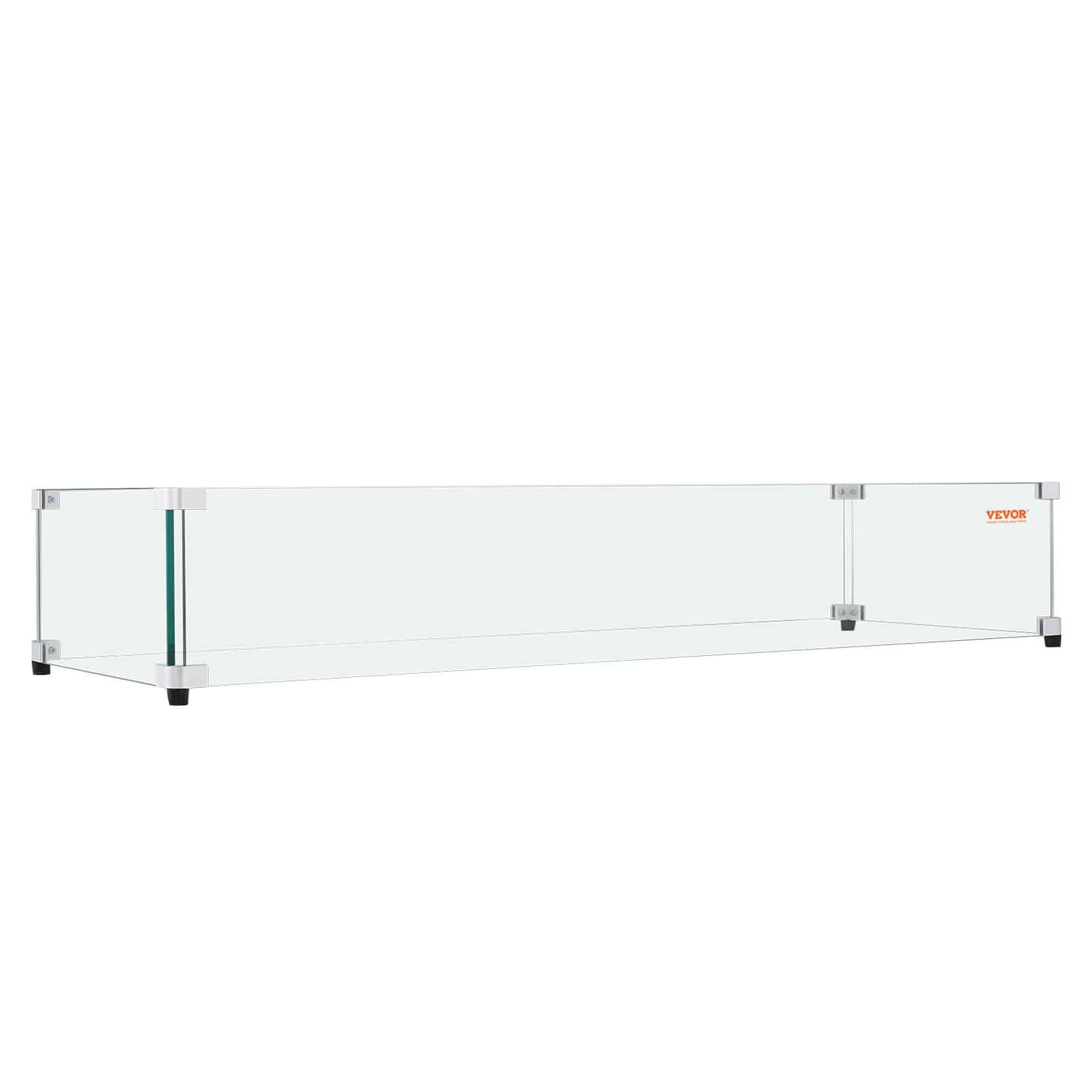 VEVOR Glass Wind Guard for Rectangular Fire Pit Table 924 x 417 x 191 mm, 8mm Thick and Sturdy Tempered Glass Panel with Hard Aluminum Corner Bracket & Rubber Feet, Easy to Assemble