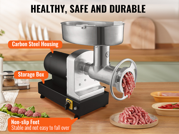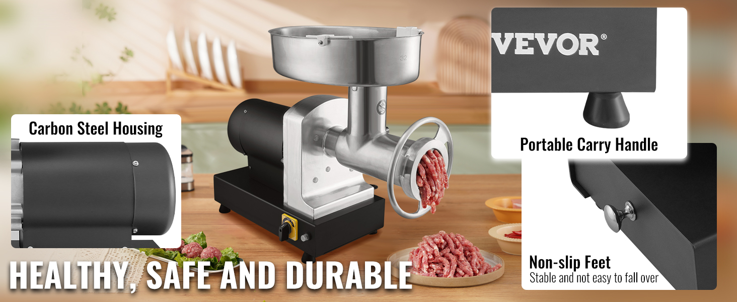 Our meat grinder features a premium carbon steel body and a larger food tray with attachments made of food-grade materials for healthier food processing. In addition, high hardness, heat resistance, and rust-proof are far superior to other models.