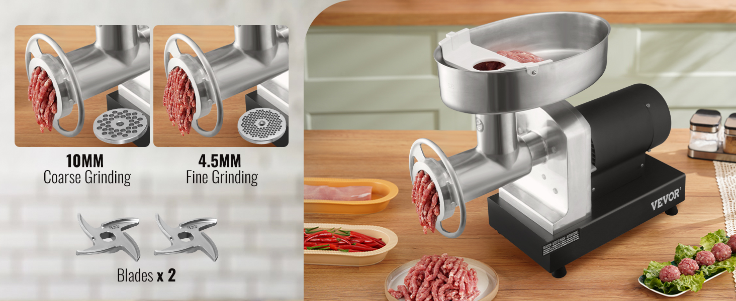 VEVOR Heavy Duty Electric Meat Grinder 449.5 kg/H Capacity 1100W & Sausage Stuffer