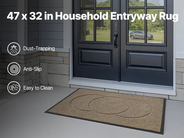 • Large Size: The front door mat measures 47 x 32 in / 1194 x 813 mm with a 0.28 in / 7 mm thickness, perfectly fitting hallways, patios, and porches