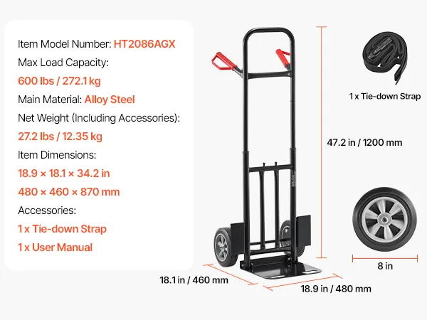 Ready to move heavy loads? This hand truck helps you handle various transport tasks with ease, saving effort, improving efficiency, and ensuring secure delivery.