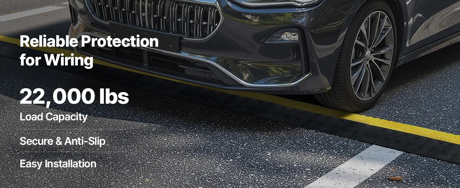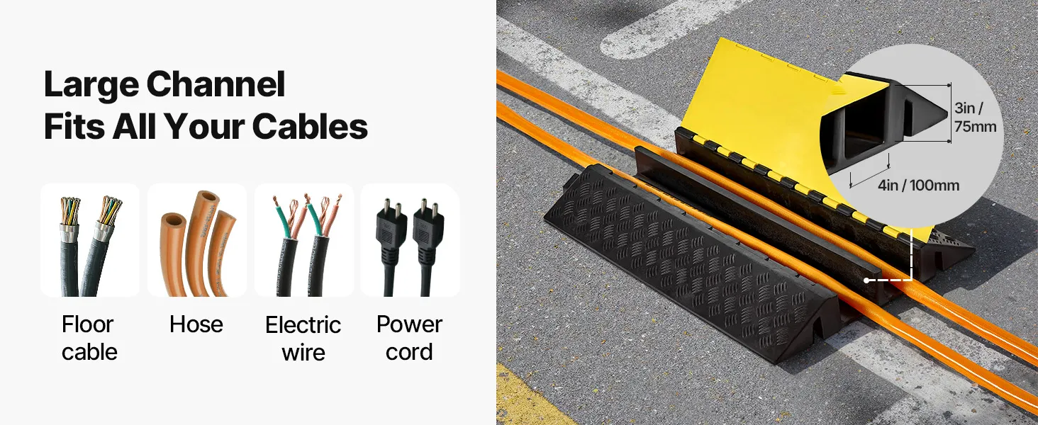 Lay your cables quickly with a flip-open top cover. Stands up to 22,000 lbs/axle, it won’t crack or deform even under heavy truck traffic. The dual-channel design lets you run two separate cables without tangling, and accommodates multiple cables and wires. Connect easily and stay firmly in place.