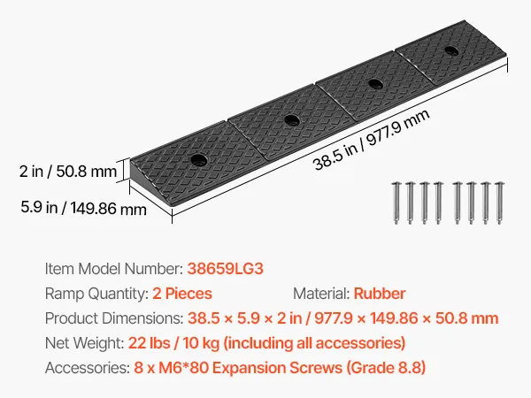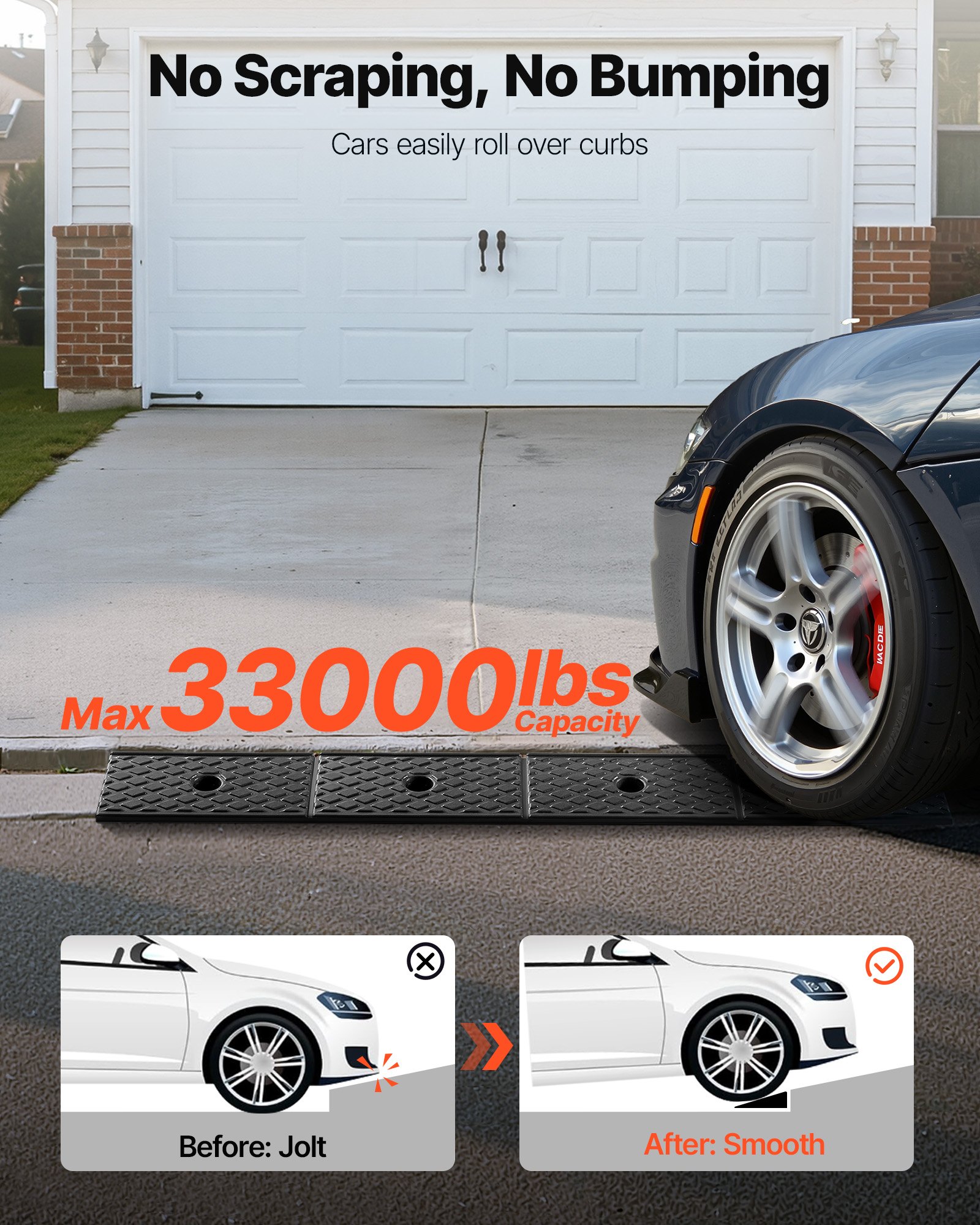 VEVOR Rubber Curb Ramp, 15 Tons Load Capacity, 50.8 mm Rise Height Heavy Duty Rubber Threshold Ramp with Drainage Tank for Wheelchairs, Strollers, Motorcycles, Cars, Lawn Mowers & Trailers, 2 Pack