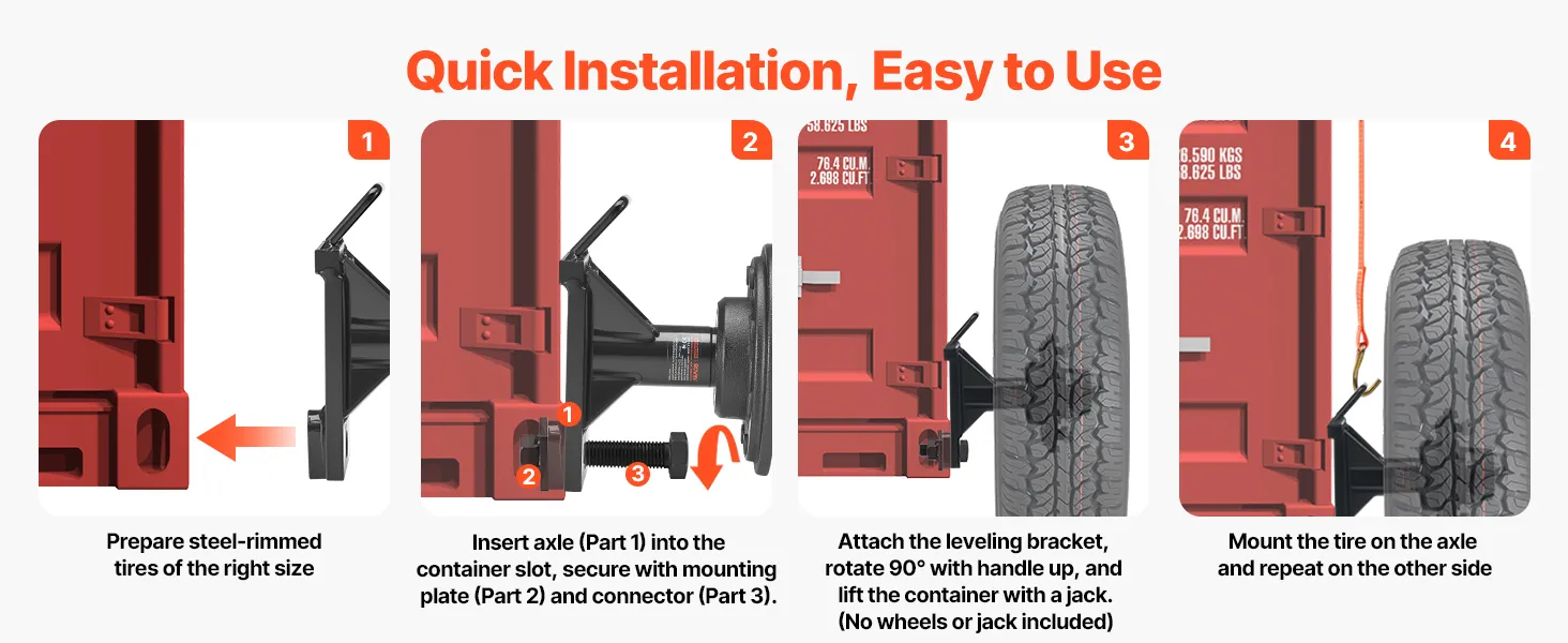 • Solid Build: Made of strong steel with cold-rolled craft, this shipping container axle kit supports up to 8800 lbs. It easily moves 20 ft and 40 ft empty containers while keeping solid strength and durability