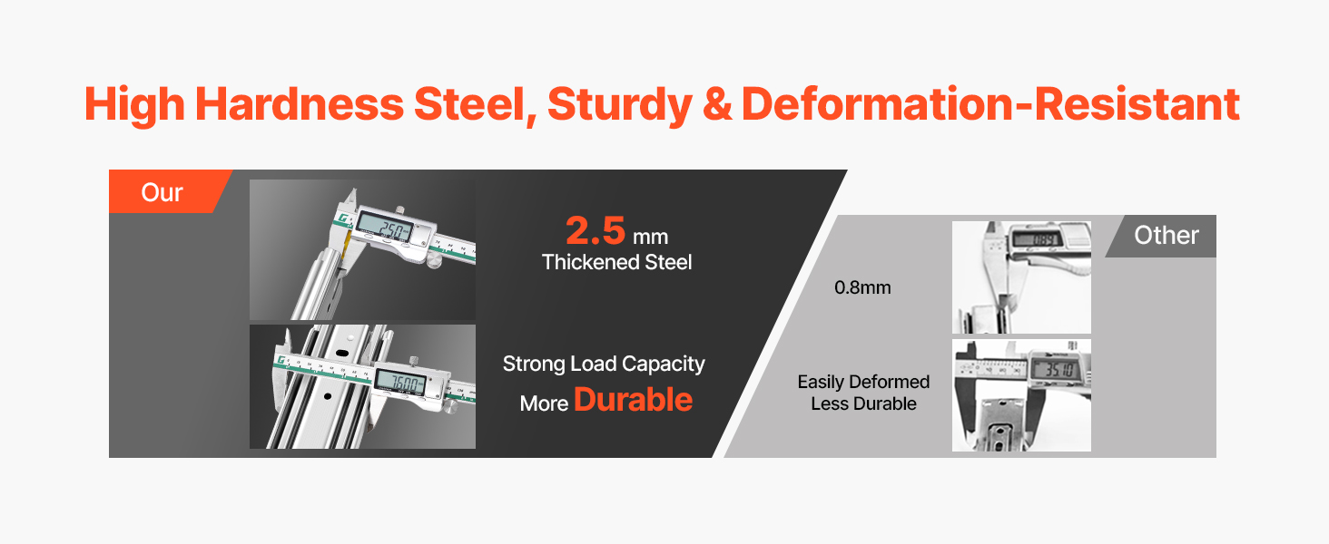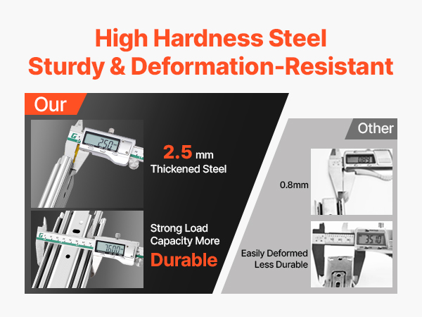 • 500lbs Heavy-Duty: Made of 0.77 in/19.5 mm thick high hardness steel, the heavy duty drawer slides have a weight capacity of up to 500 lbs. The galvanized finish makes the telescoping drawer slides rust and wear-resistant for long-time use. It can be used in shelving, cabinets, industrial drawers, RVs, trucks, vending machines and more.