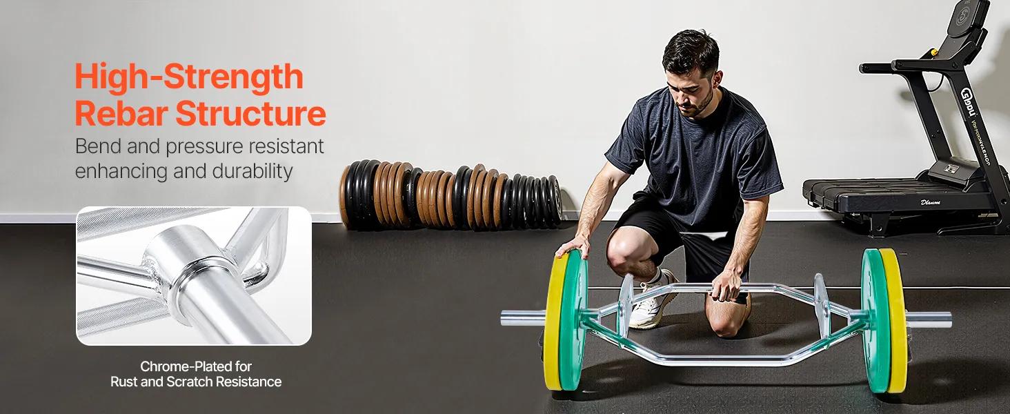 VEVOR Trap Bar Hex Bar, 50mm Hex Barbell, 360 kg Capacity Shrug Bars with Knurled Grips, Weightlifting and Strength Training Equipment, Home Gym for Squats, Deadlifts, Shoulder Presses, Silver