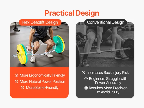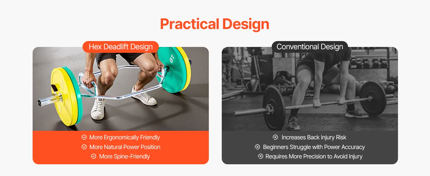 The hexagonal deadlift design is specifically crafted to improve your lifting posture, and guard your spine during heavy lifts.