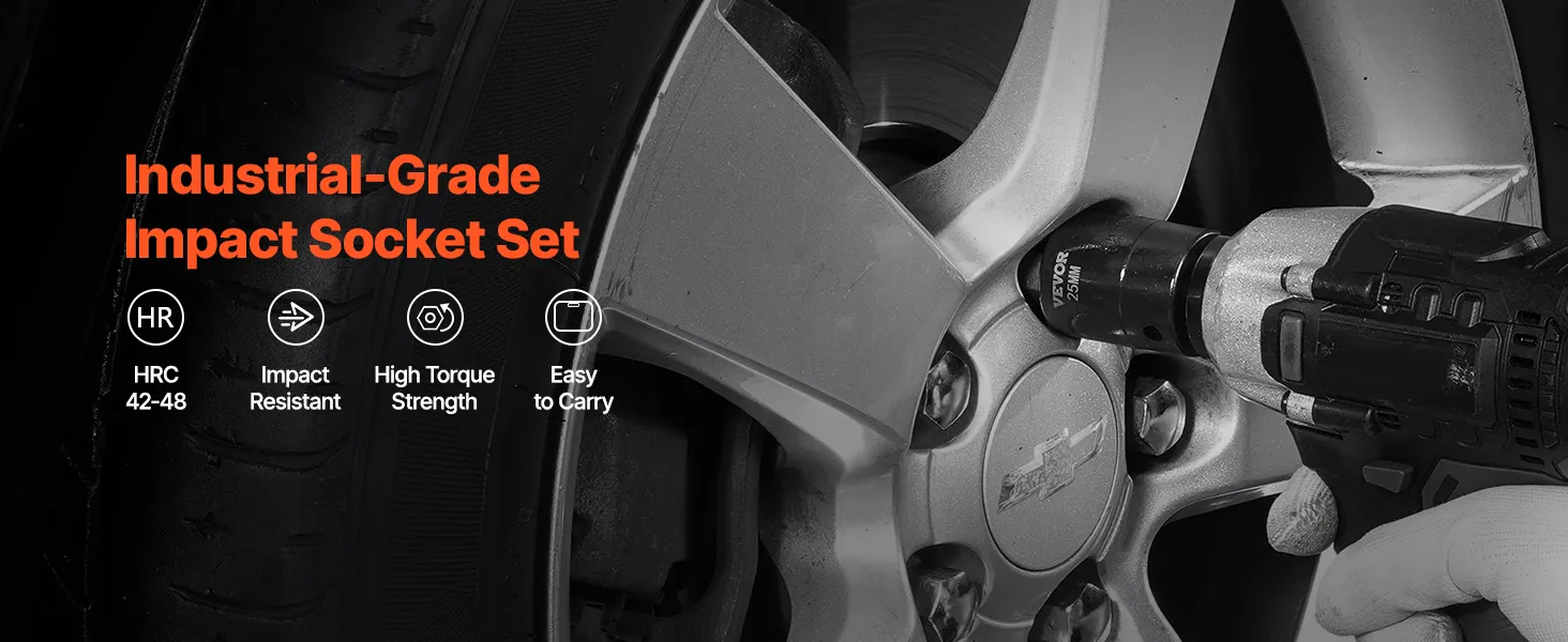 Набір ударних головок VEVOR 26 шт., 1/2" привід, 10–36мм, CR-V сталь, 6-гранні, з кейсом для зберігання
