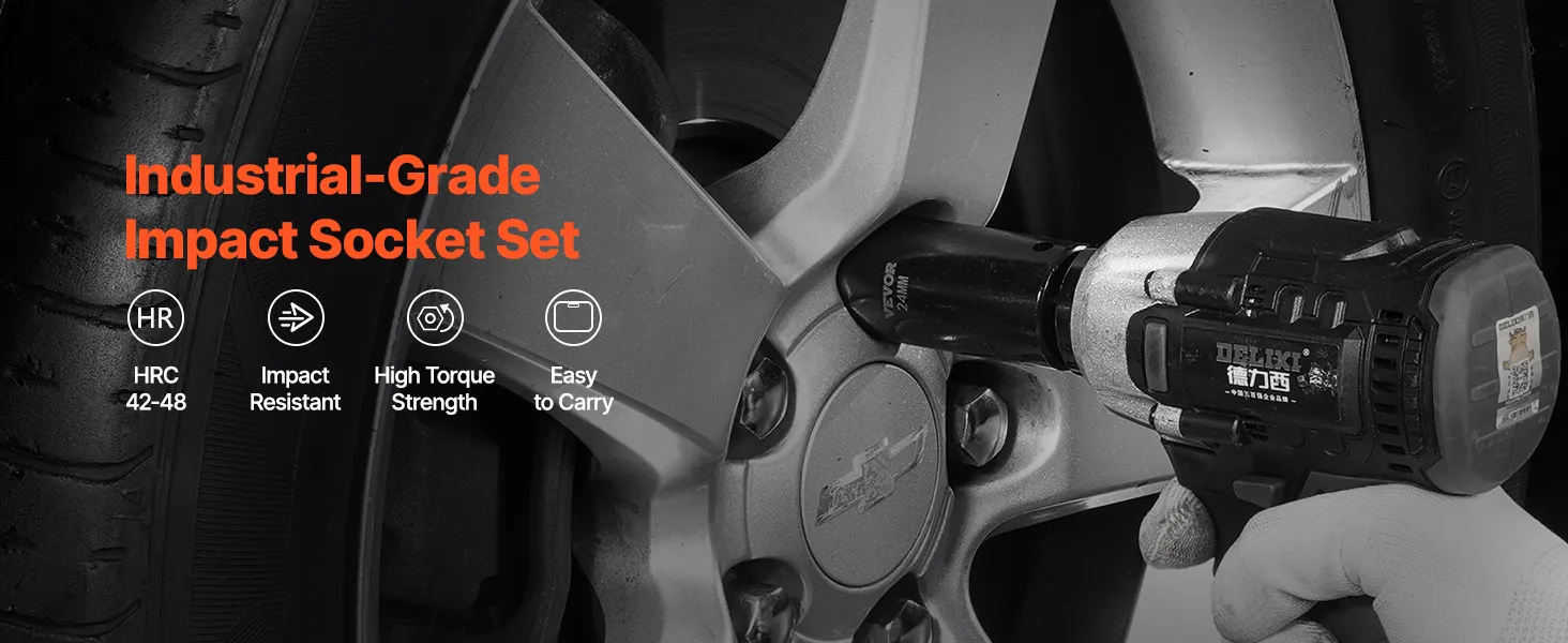 Набір ударних головок VEVOR 43 шт., 1/2'' привід, 6-гранні метричні стандартні/глибокі головки 9–30мм з подовжувачами