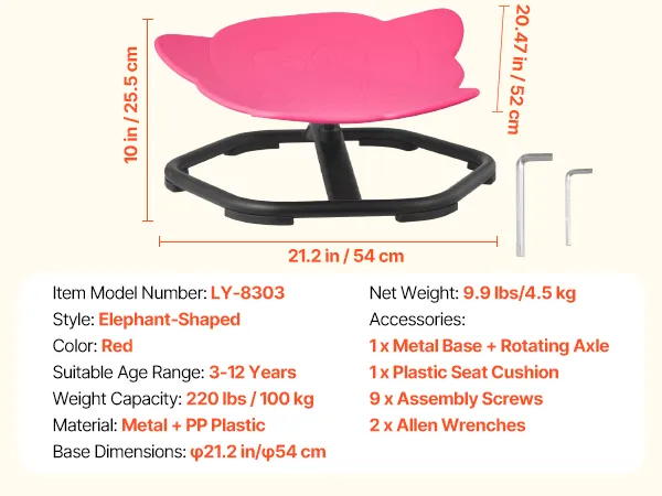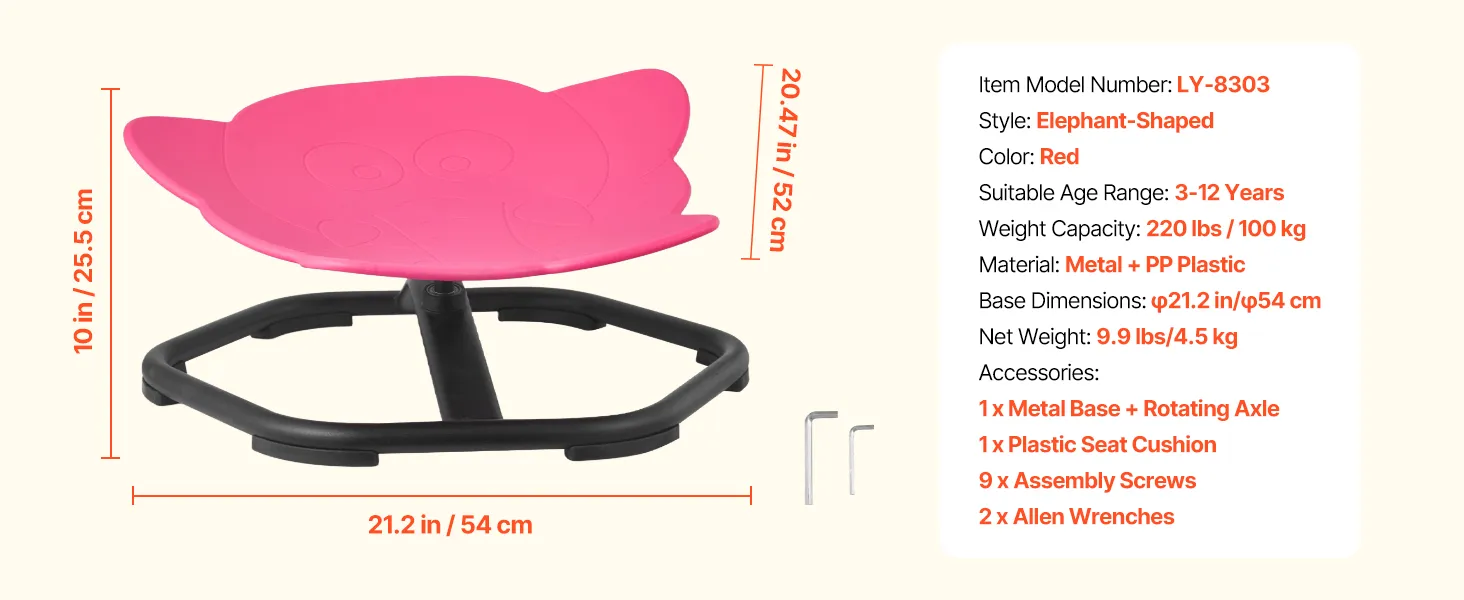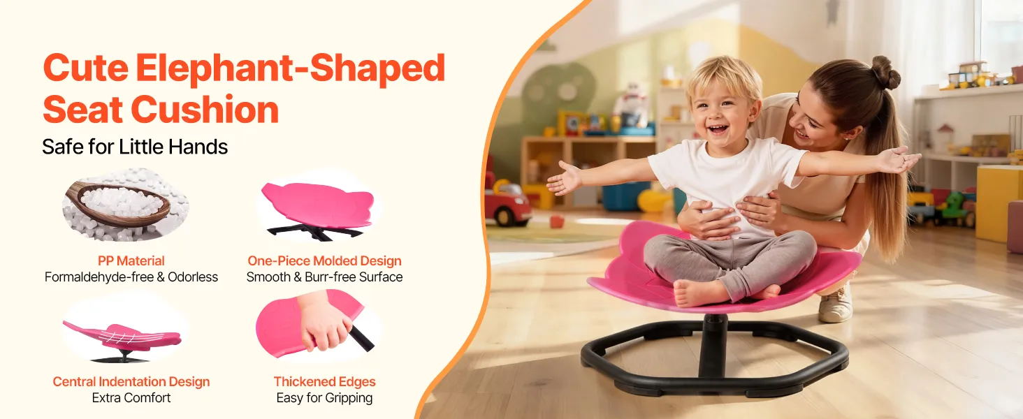 VEVOR Kids Swivel Chair, 220 lbs Capacity, Elephant Shape Sensory Spinning Chair, Autistic Kids Sensory Toy Seat with Non-Slip Metal Base, Toddler Sit & Spin Seat for Coordination Balance Focus, Red