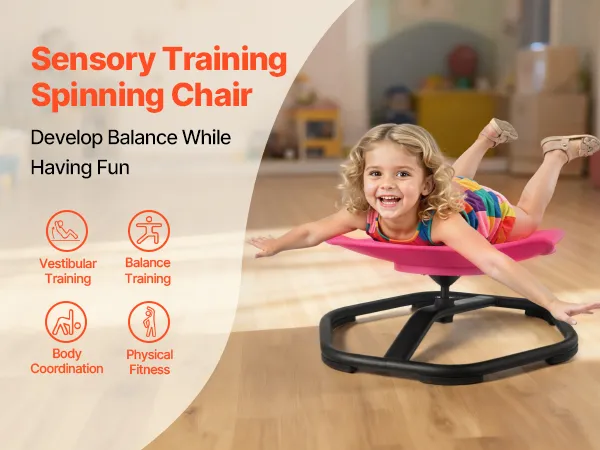 This kids swivel chair stimulates the vestibular system through spinning, helping kids strengthen their grip and core muscles, improving coordination, balance, and brain development.