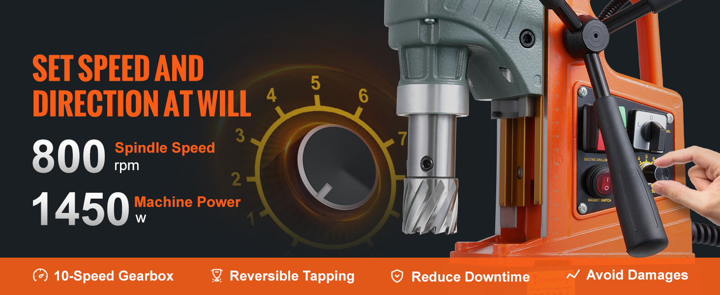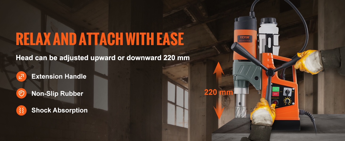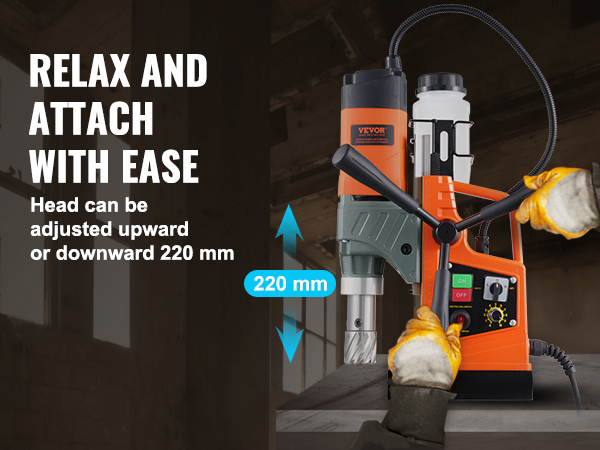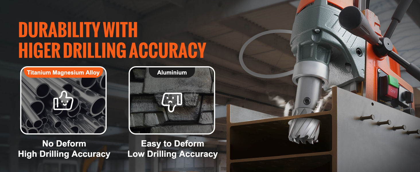 Our electric drill press can generate a power force and perform more efficiently thanks to its powerful motor. With a 12500N holding force, our mag drill can anchor itself on any steel and iron surface tightly to accurately position and drill holes without burr.