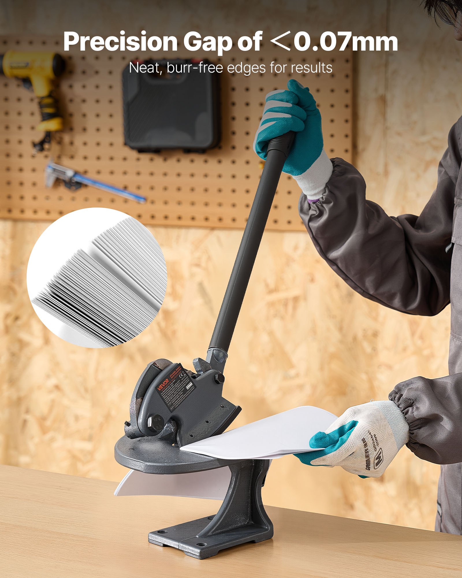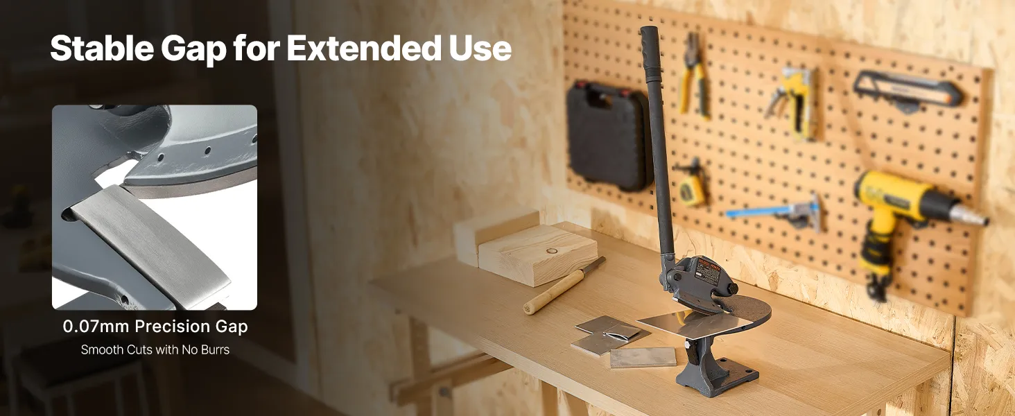 This high precision manual metal shear delivers precise gap control, engineered for accuracy, that is sharp enough to pass the paper test. Its upgraded reamed-hole screws minimize long-term wear and gap loosening, ensuring clean, burr-free cuts even after extended use.