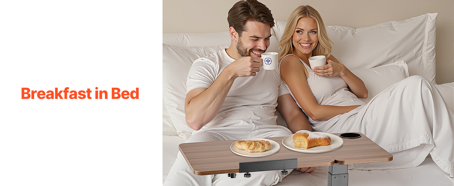 This versatile overbed table features adjustable height, making it ideal for use as a bar table, dining table, laptop desk, or standing desk. Whether you're writing, studying, working, or eating, it seamlessly fits into your daily routine.