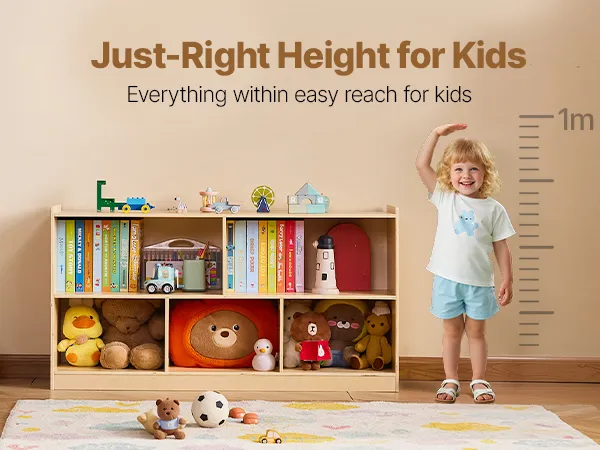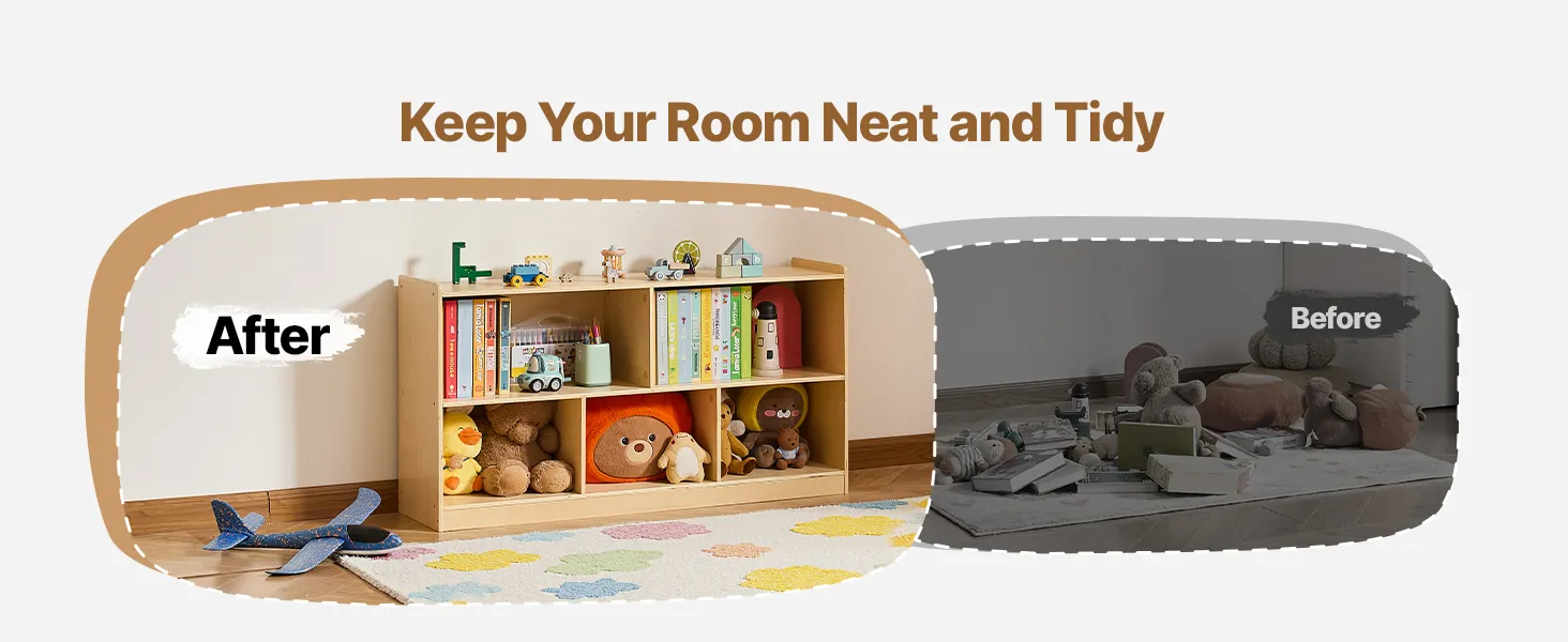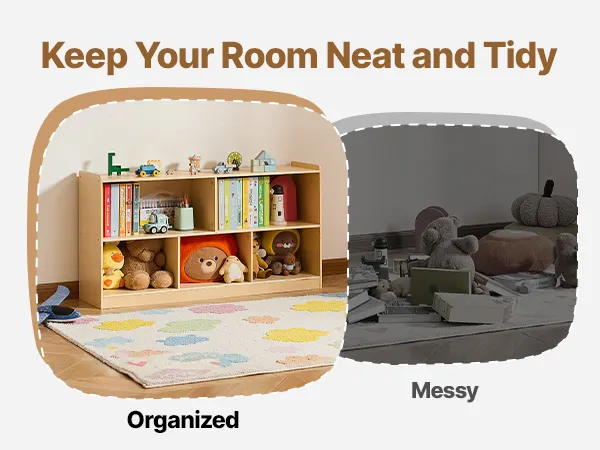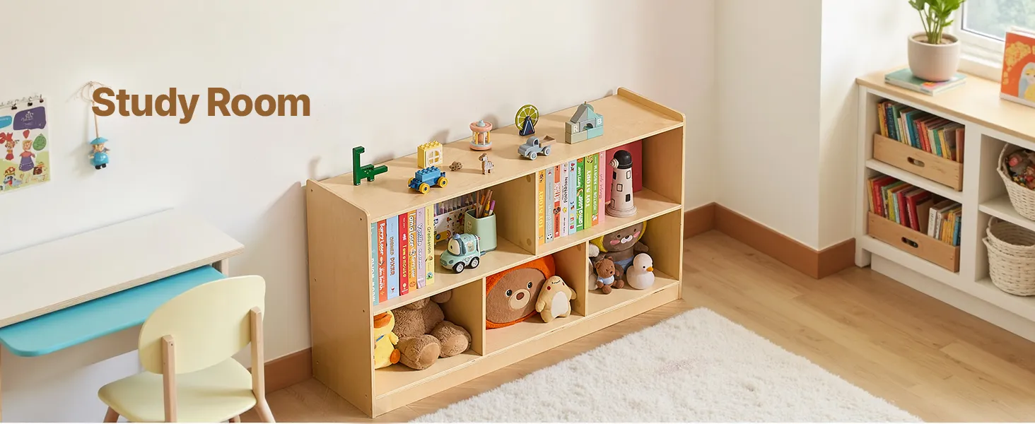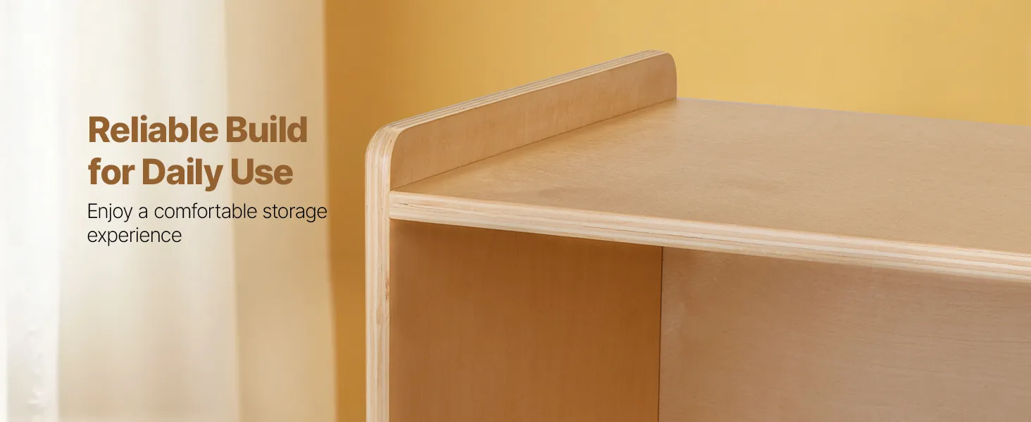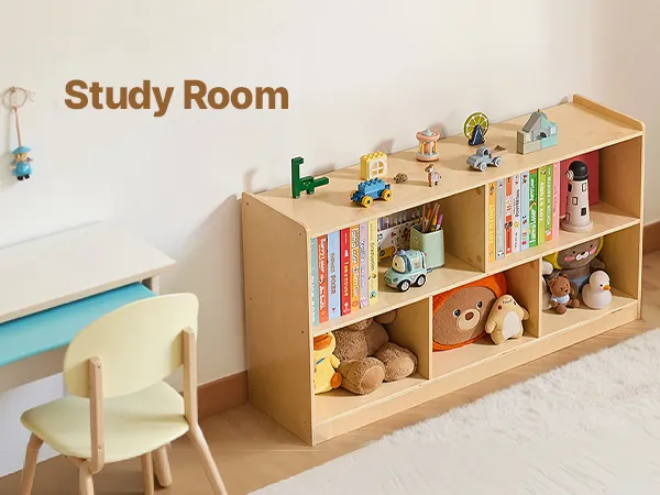 This montessori shelf  holds clothes, backpacks, school supplies, and personal items. Spacious compartments and a flexible layout help keep any space, classrooms, bedrooms, or playrooms organized, making it easier for kids to tidy up independently.