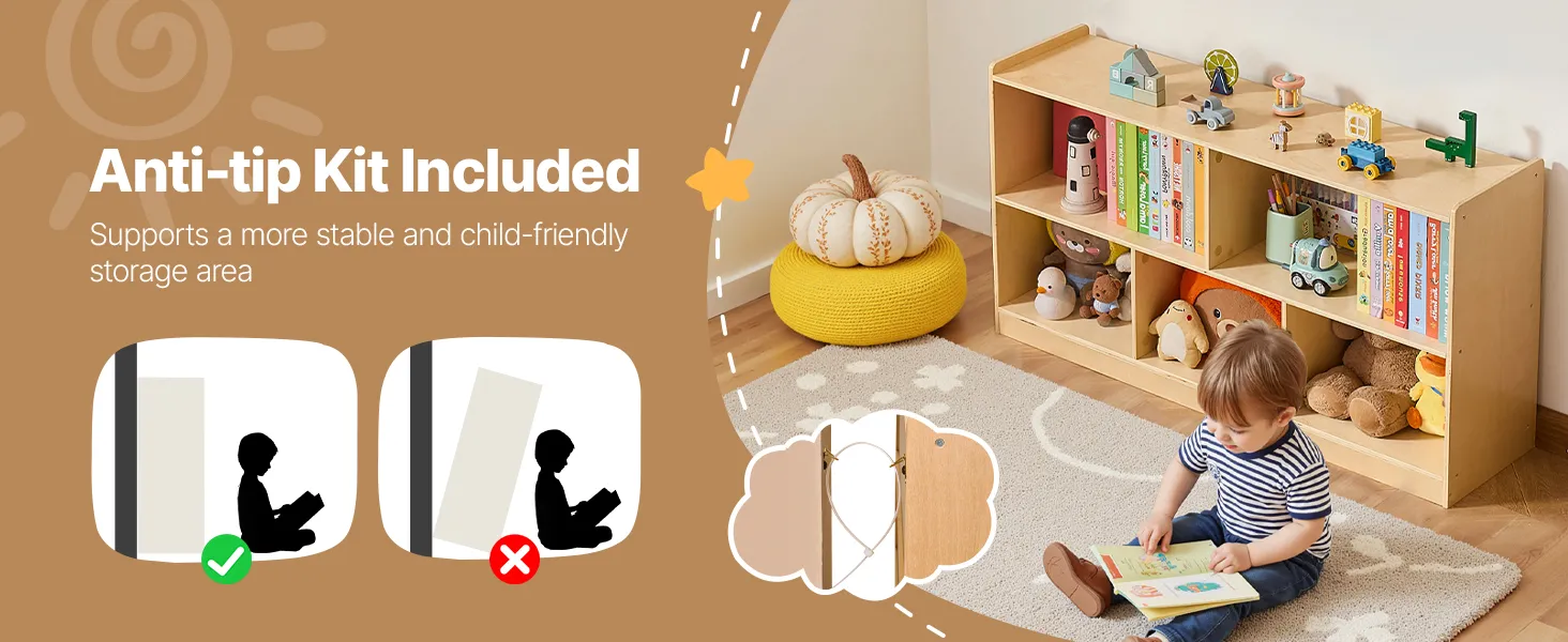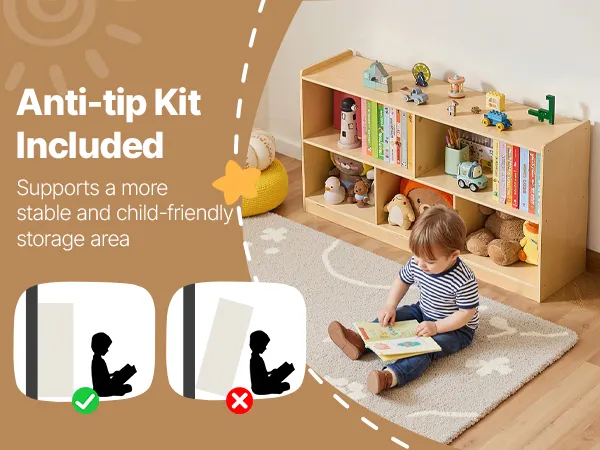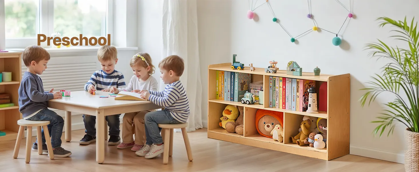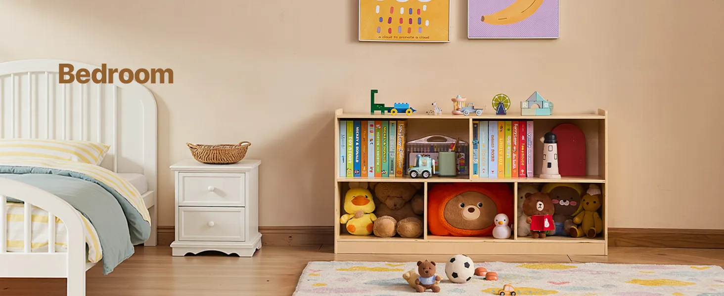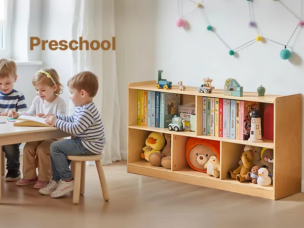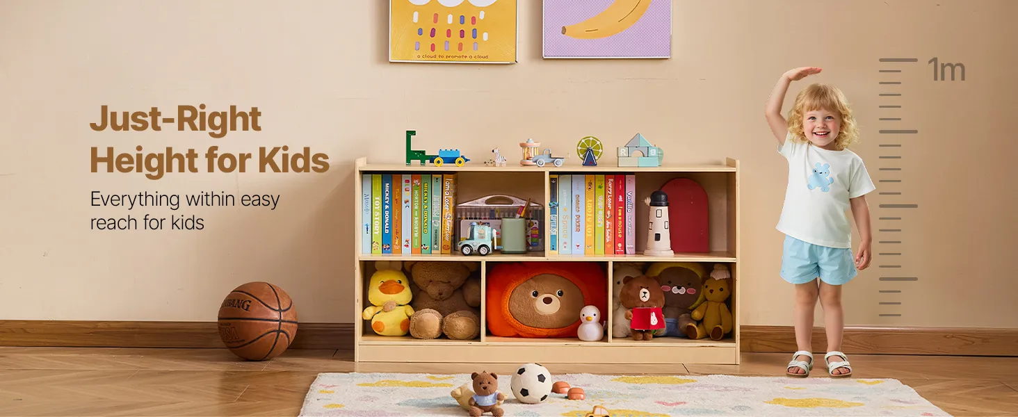 This montessori shelf  holds clothes, backpacks, school supplies, and personal items. Spacious compartments and a flexible layout help keep any space, classrooms, bedrooms, or playrooms organized, making it easier for kids to tidy up independently.
