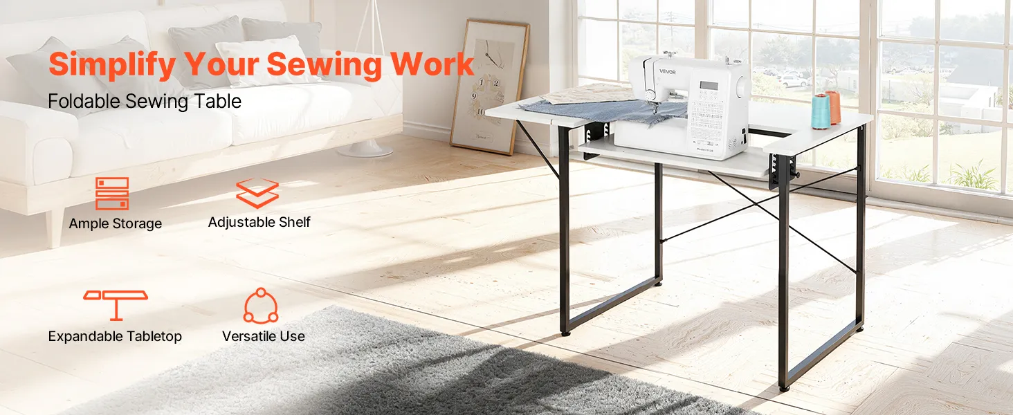 This foldable sewing table provides ample storage space, easily organizing sewing tools and materials. Its flexible shelf can be adjusted according to the height of different sewing machines, while the expandable tabletop provides more operating space, making your sewing work more efficient.