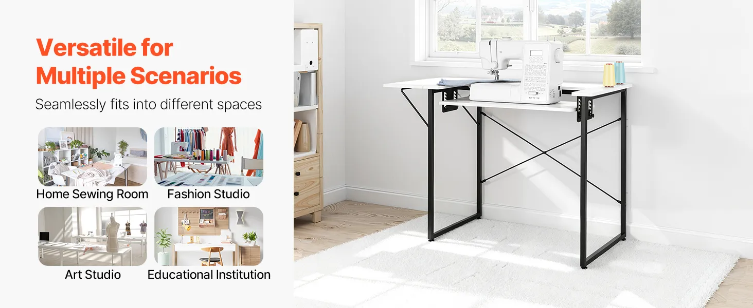 With its modern minimalist design and practical functions, this sewing table with storage easily adapts to various scenarios. It fits seamlessly in home sewing rooms, clothing studios, art studios and educational institutions, meeting your diverse needs for handcrafting, and office work.