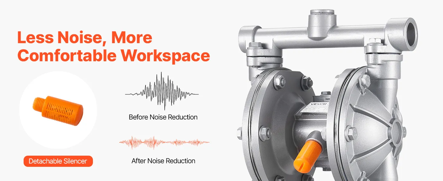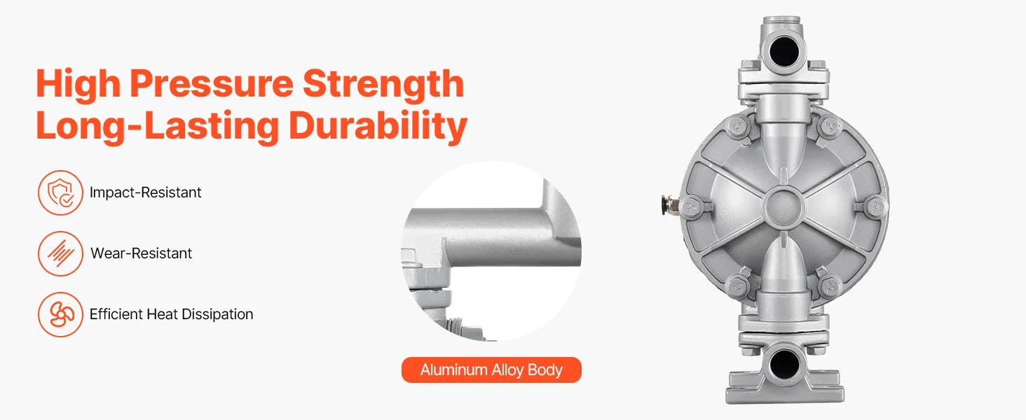 Our air operated diaphragm pump features a professional pneumatic design with industry-standard ports, integrating seamlessly with your piping system for secure and dependable performance.