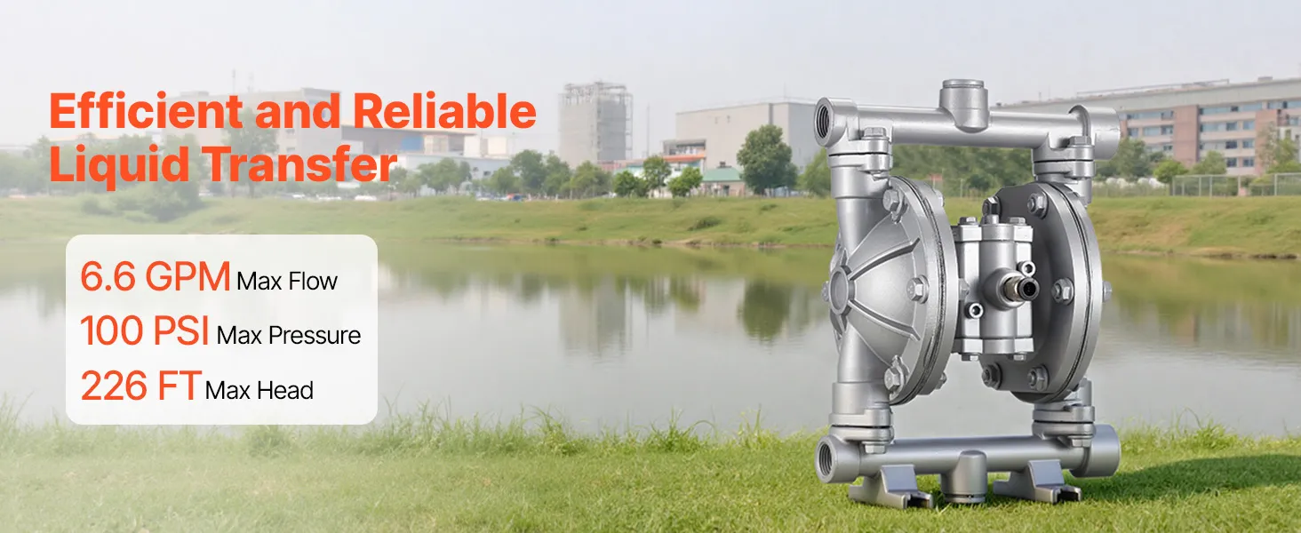 VEVOR Air Operated Double Diaphragm Pump, 24.98 LPM Max, Standard Inlet & Outlet Air Pneumatic Waste Oil Transfer Pump, Aluminum Alloy Body, Dual Diaphragms, for Diesel, Grease, Kerosene, Gasoline