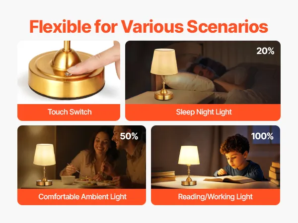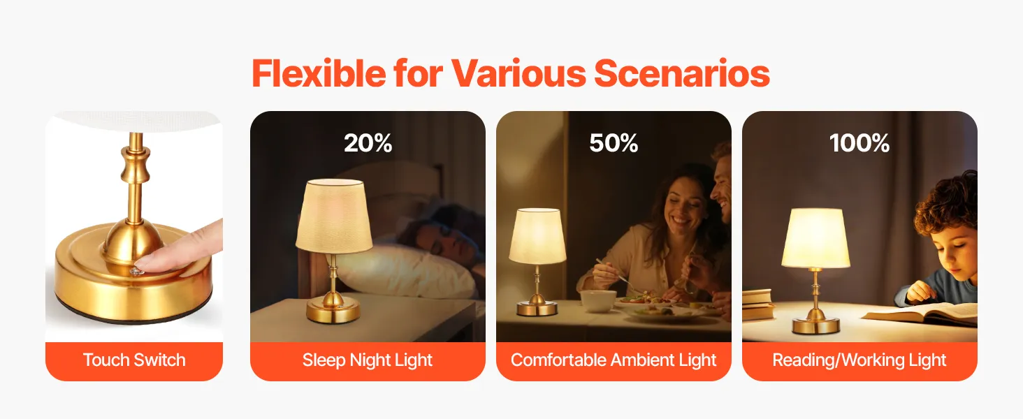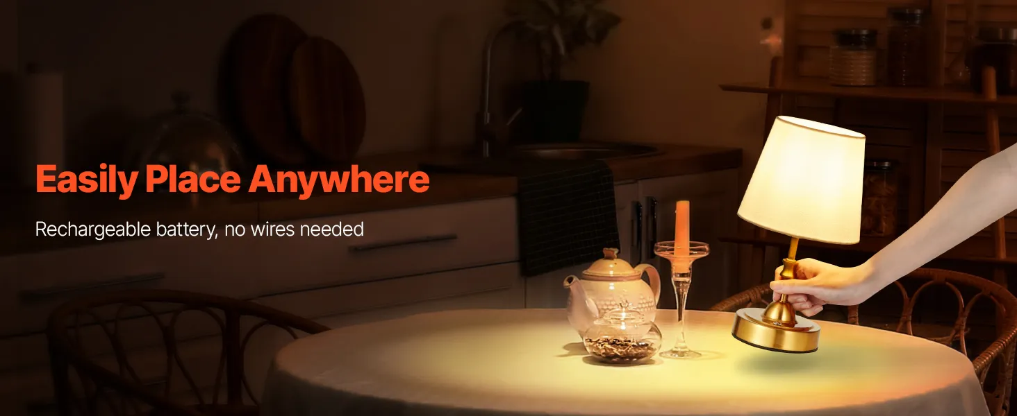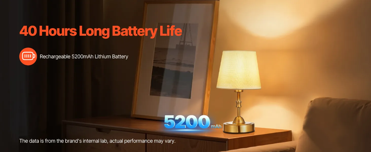 This cordless table lamp ensures long-lasting performance for all your lighting needs. Whether reading, working, or enjoying outdoor activities, it provides a steady light source. With three adjustable brightness settings, easily switch from soft ambiance to bright reading light.