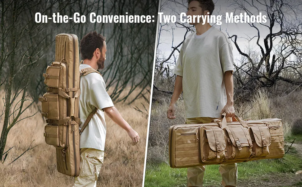 • 2 Ways to Carry: Our tactical rifle bag can be carried on the shoulder or hand-carried. The option to carry the long gun bag adds practicality and convenience, making it a versatile and reliable companion for various outdoor activities and shooting adventures.