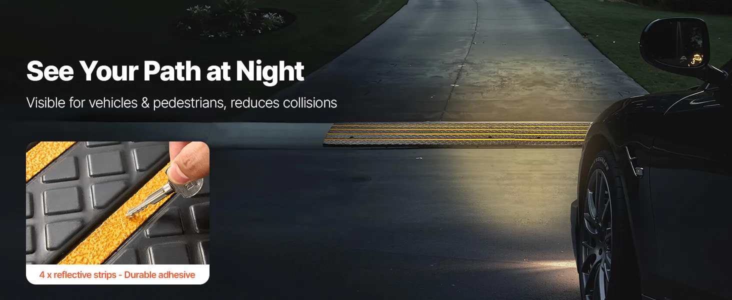 VEVOR Car Driveway Rubber Curb Ramp, 15 Tons Load Capacity, 66 mm Rise Curbside Bridge Ramp with Yellow Reflective Strips, Suitable for Loading Dock, Warehouse, Garage, Sidewalk (1 Pack)