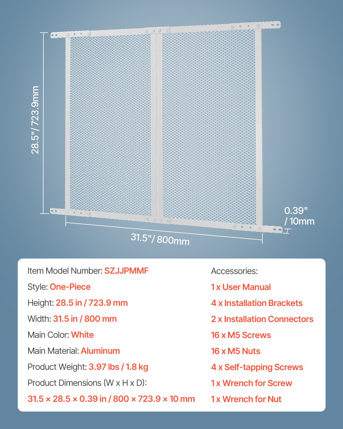 VEVOR RV Screen Door Protector, 800x723.9 mm Door Grille, Easy to Install and Disassemble, Reinforced Breathable Protective Mesh, Aluminum Alloy Camper RV Entry Protector for Pet Protection, White