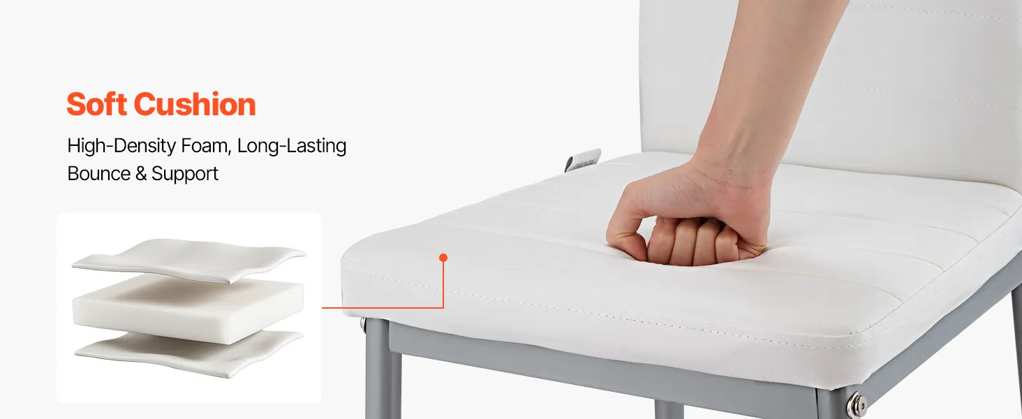 Набір з 4 білих сучасних обідніх стільців VEVOR з м’якими подушками, оббивкою з ПВХ і металевими ніжками, ергономічні стільці для кухні