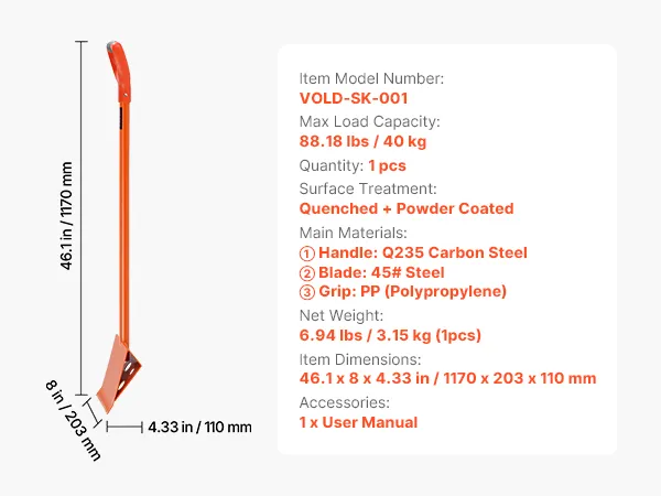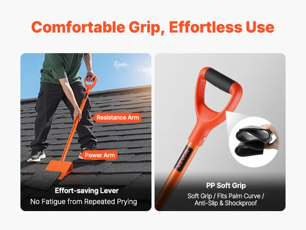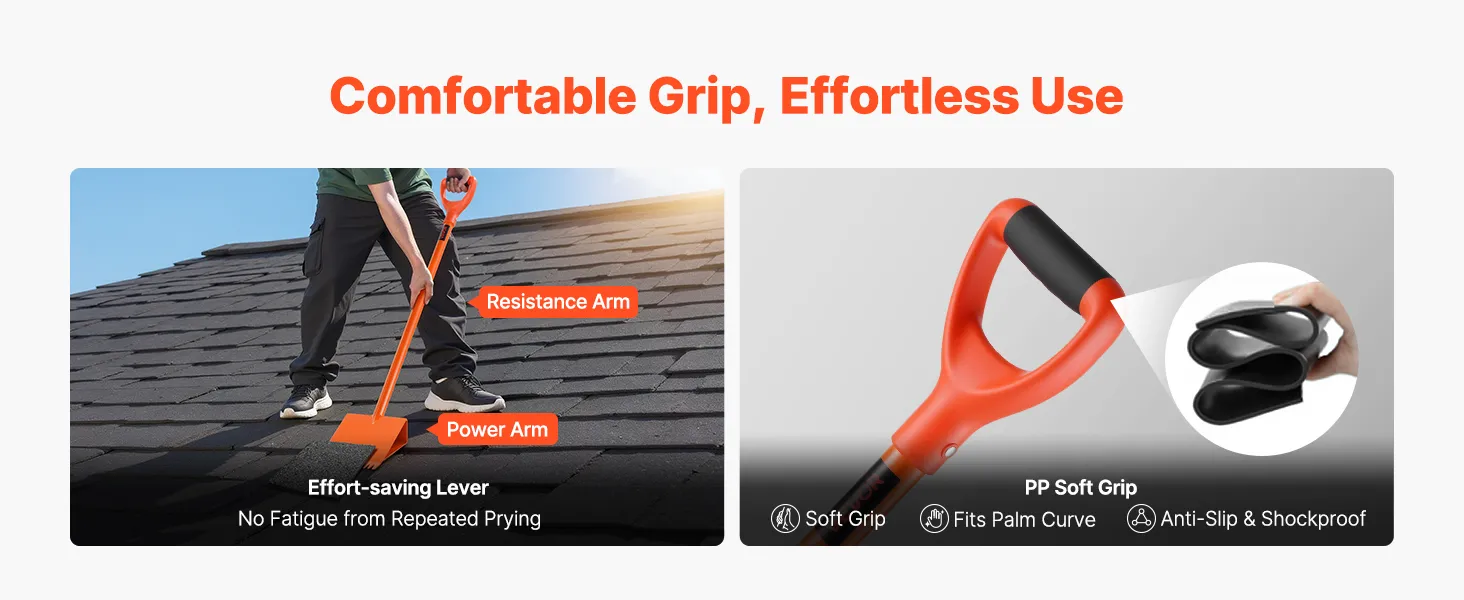 VEVOR Shingle Shovel 1 Pack, D-Grip Handle Shingle Roof Ripper, High Hardness 45# Steel & Lightweight Easy Tearing Off Roofing & Nails Tool, ideal for Commercial and Residential Use,Orange