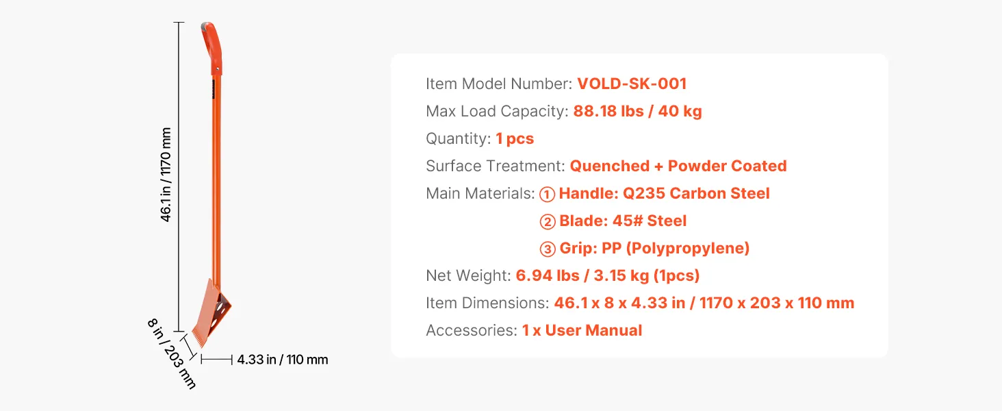 Leveraging the principle of leverage, this roof shovel optimizes the length of the resistance and power arms for effortless operation. The PP soft-coated handle ensures a secure, non-slip grip while reducing vibration, offering comfort for long tasks.