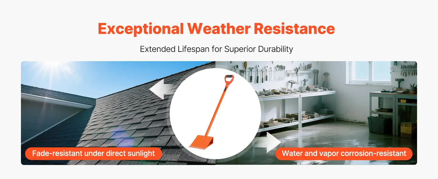 Designed for superior weather resistance, this shingle and nail removal tool withstands sun exposure without fading and corrosion-resistance, maintaining stable performance in various conditions.